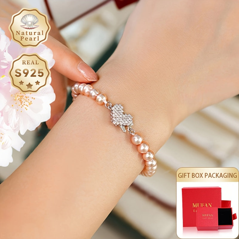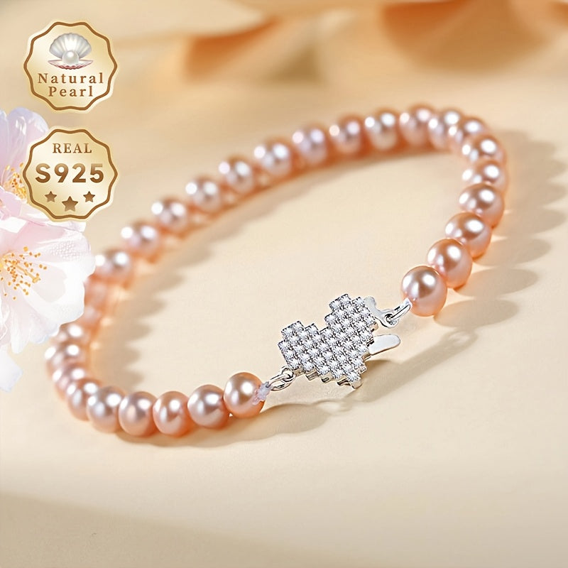 This elegant bracelet features 5-6mm bright natural freshwater pearls and S925 silver, creating a stylish and sophisticated look. Each pearl is slightly imperfect, adding a unique touch to the design.