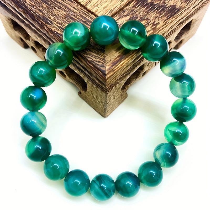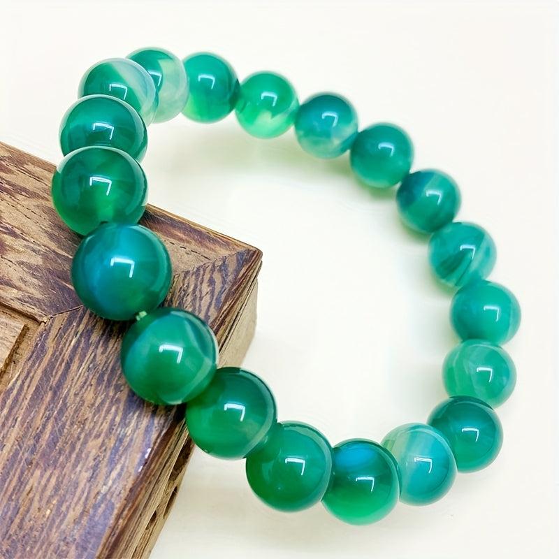 This natural green agate bracelet is a perfect accessory for good fortune and joy. It features a retro modern style that is ideal for daily wear or gifting.