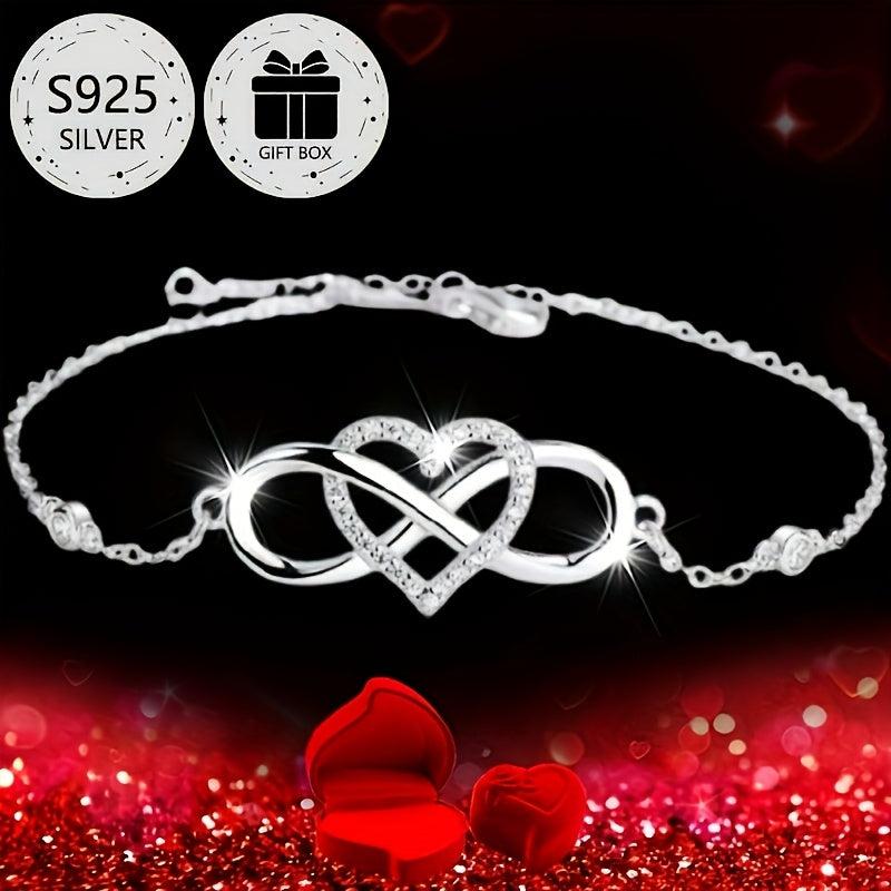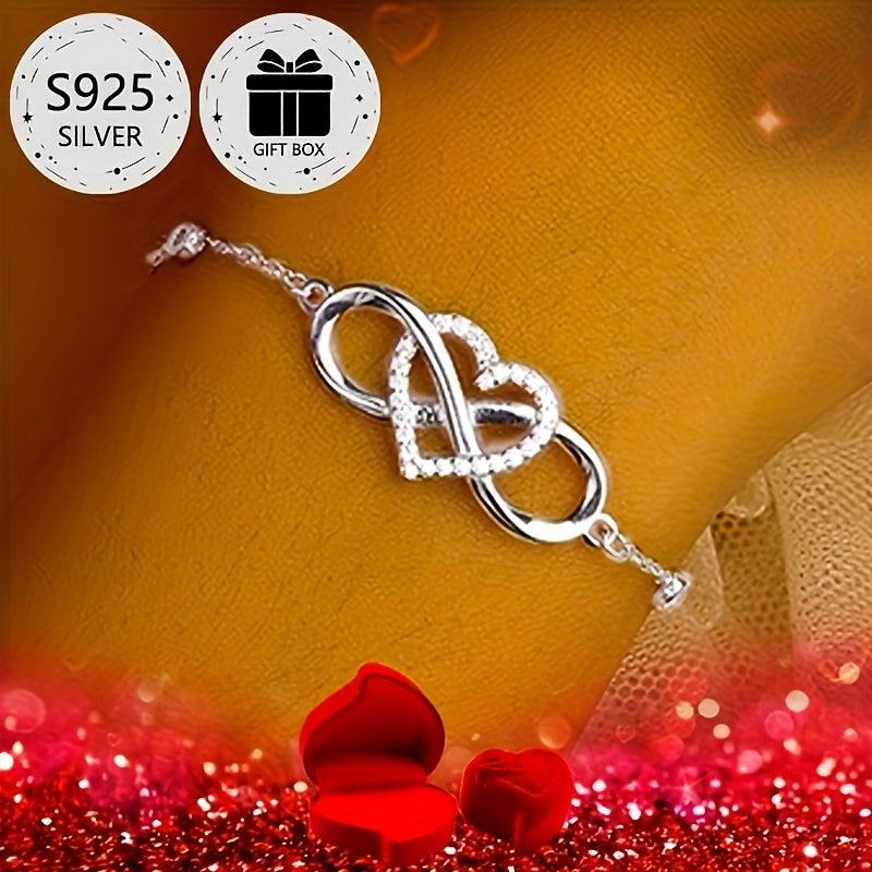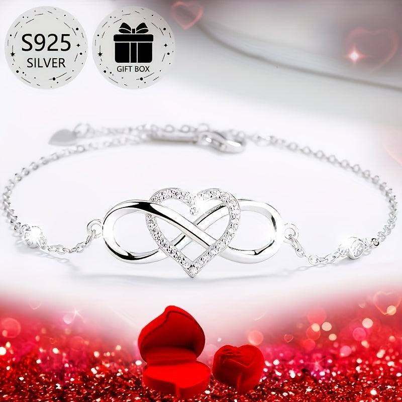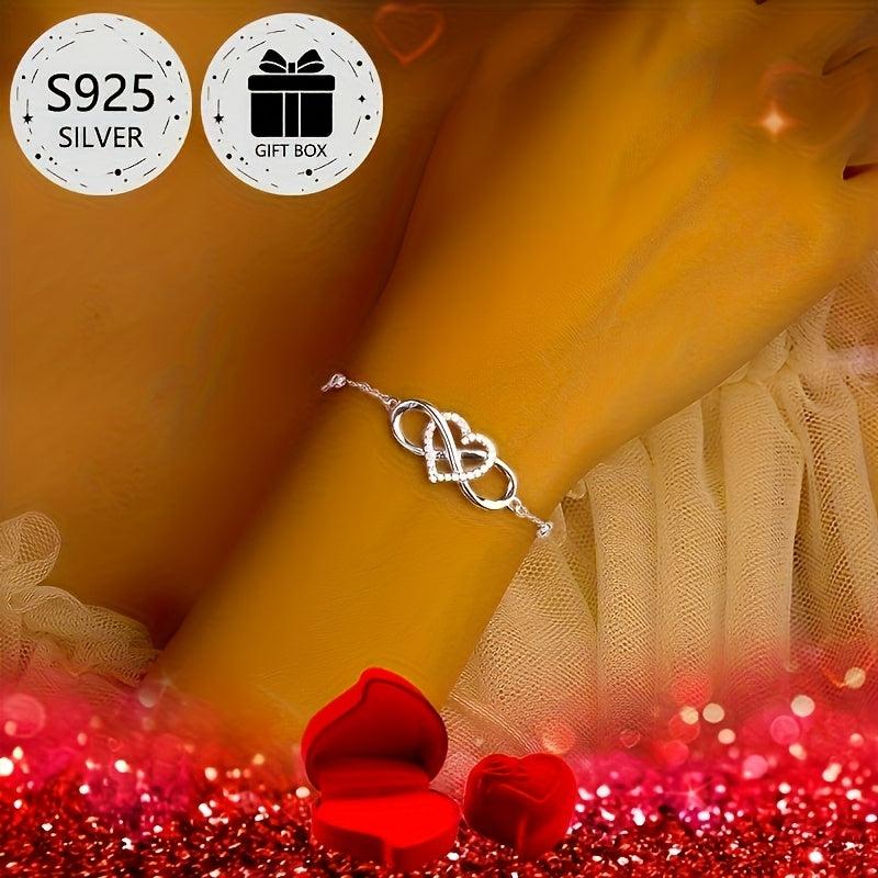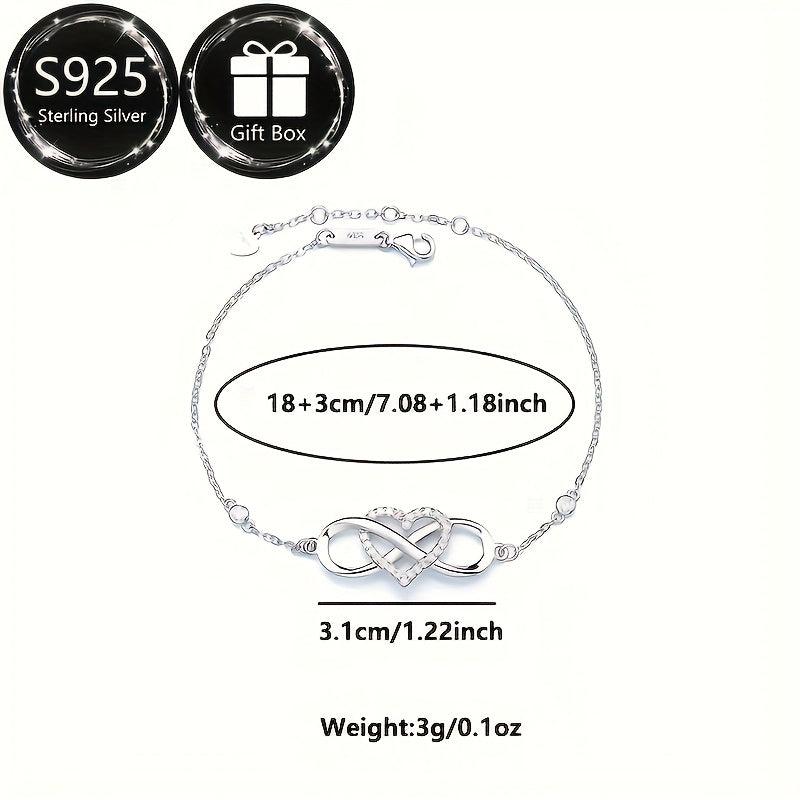 This stunning bracelet features a love shape number 8 design, crafted from 925 silver with a total weight of 3 grams. It makes for a perfect gift for mothers or bridesmaids on special occasions like weddings.