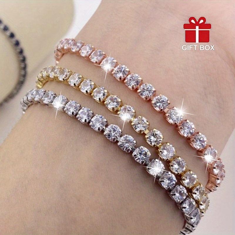 This stunning bracelet features sparkling rhinestone and crystal elements with a rose golden tone finish. Perfect for daily wear or as a special gift, it comes with a stylish jewelry bag.