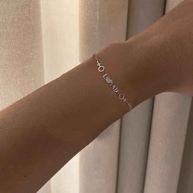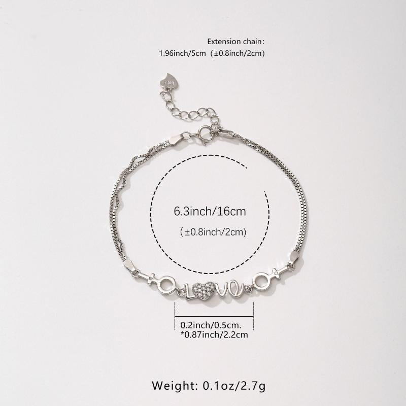 This stylish S925 silver bracelet features a LOVE decoration, perfect for parties and vacations. It is hypoallergenic and lightweight for comfortable wear.