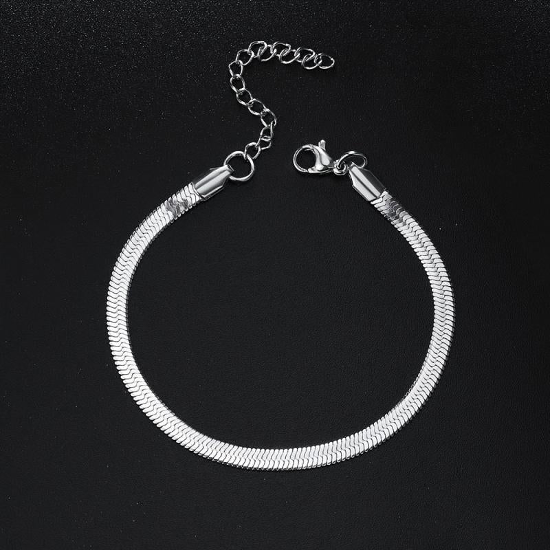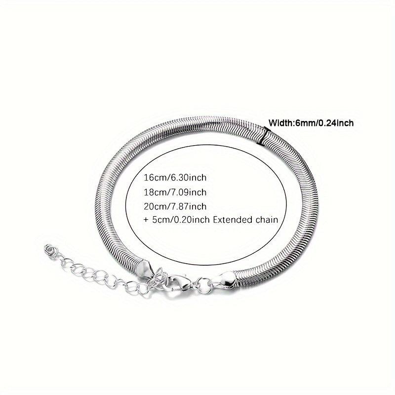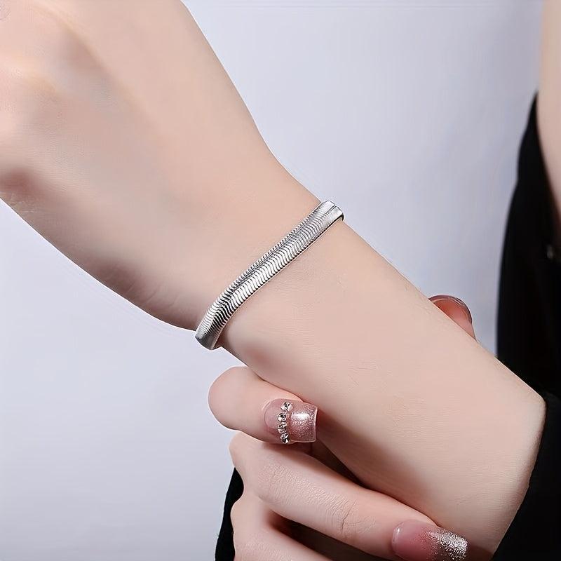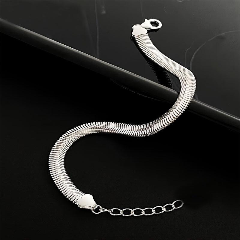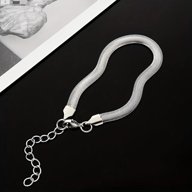 This flat snake bone bracelet is made of high-quality silvery stainless steel, offering a smooth, soft, and durable wear. Perfect for parties or as a stylish gift.