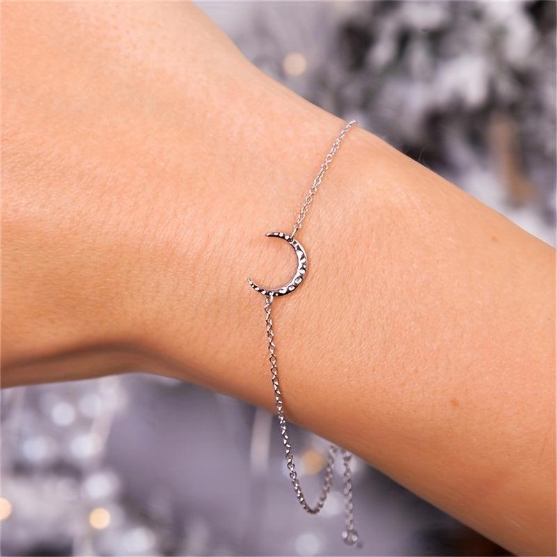 Add a touch of celestial charm to your outfit with this versatile crescent moon bracelet. Perfect for everyday wear or to elevate your party look, this stainless steel accessory is a must-have year-round jewelry piece.