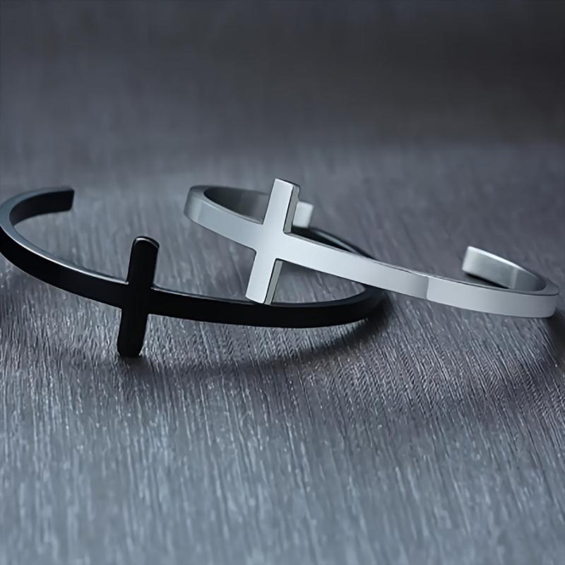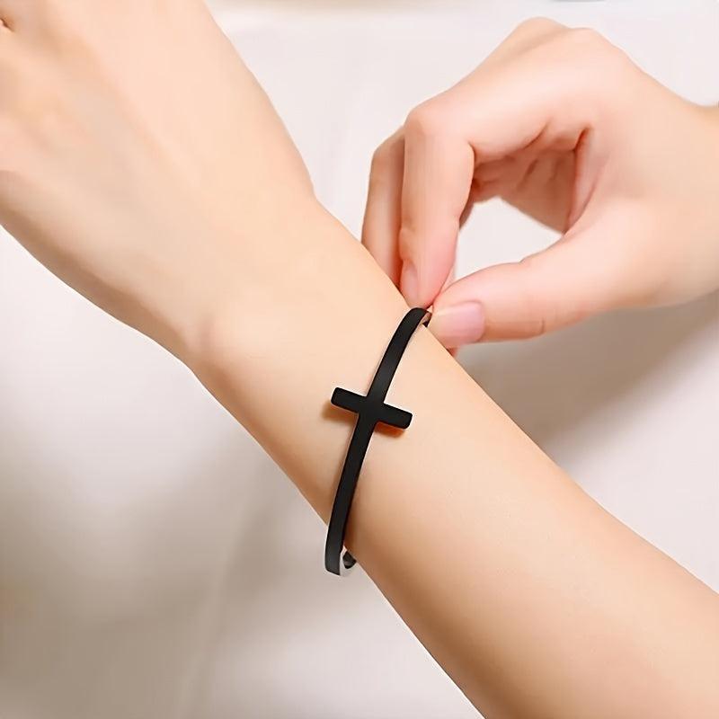 Add a touch of casual elegance with this sleek stainless steel cross bracelet that can be worn for various occasions.