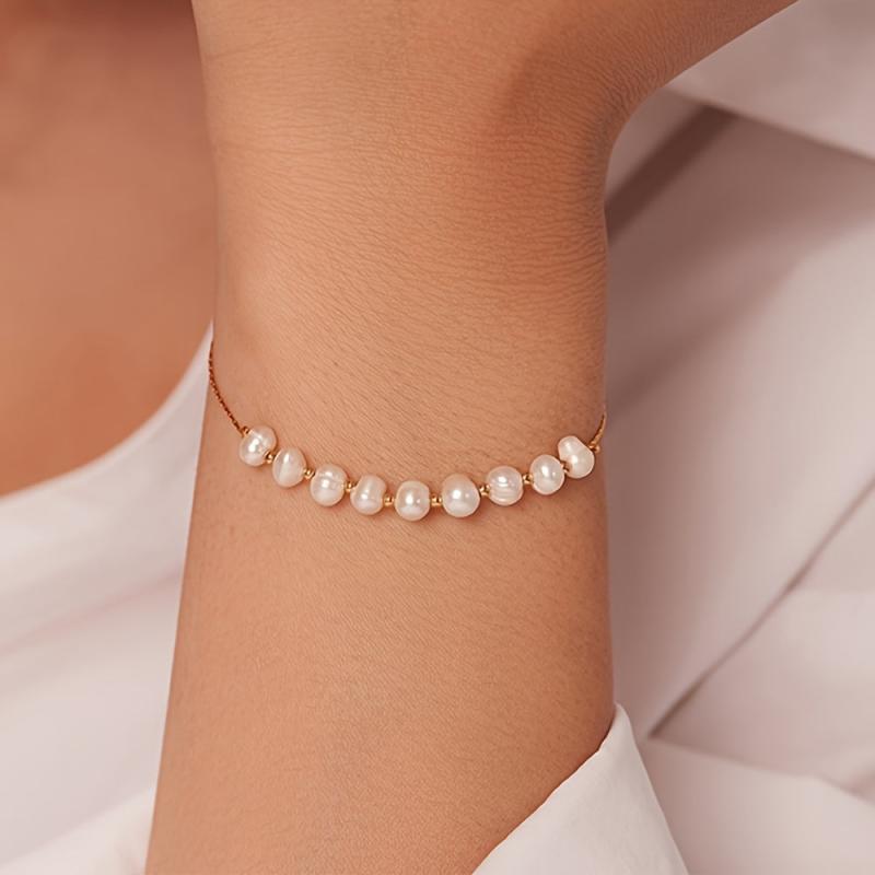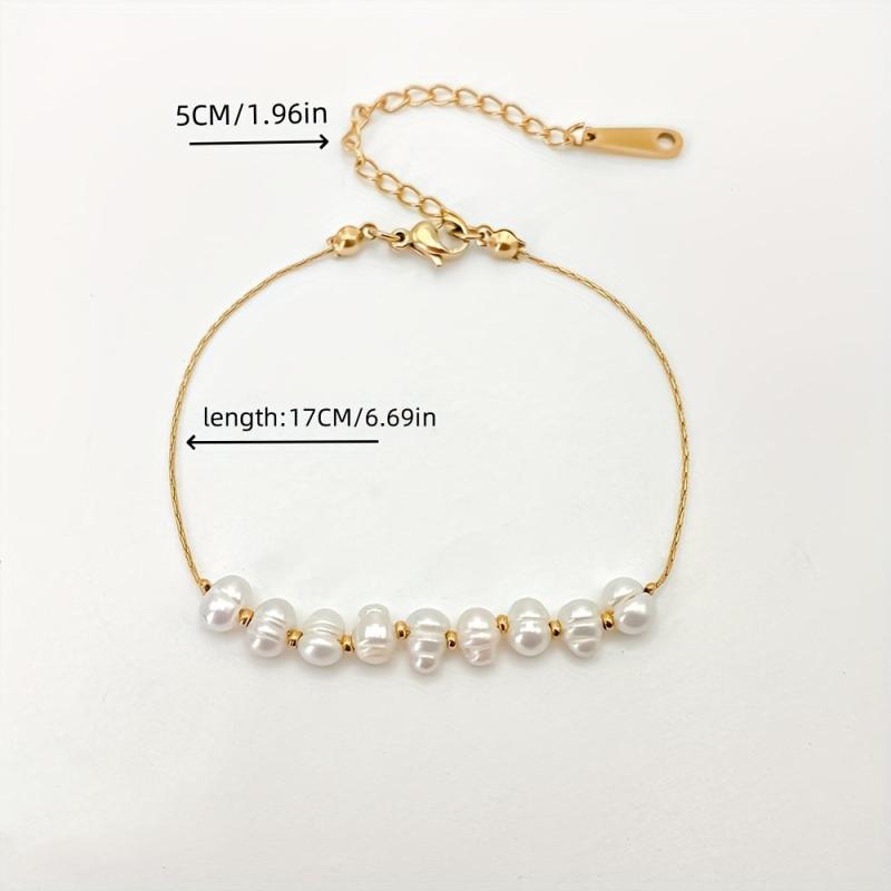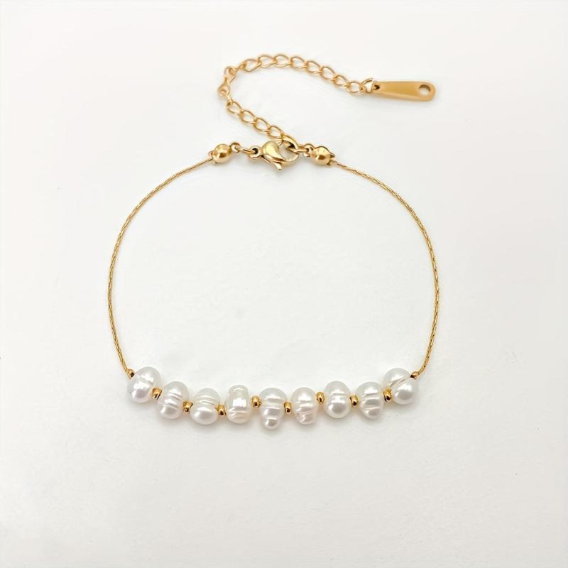 Elegant stainless steel bracelet with freshwater pearls, perfect for casual attire and gift giving. Tarnish resistant and durable for long-lasting wear.