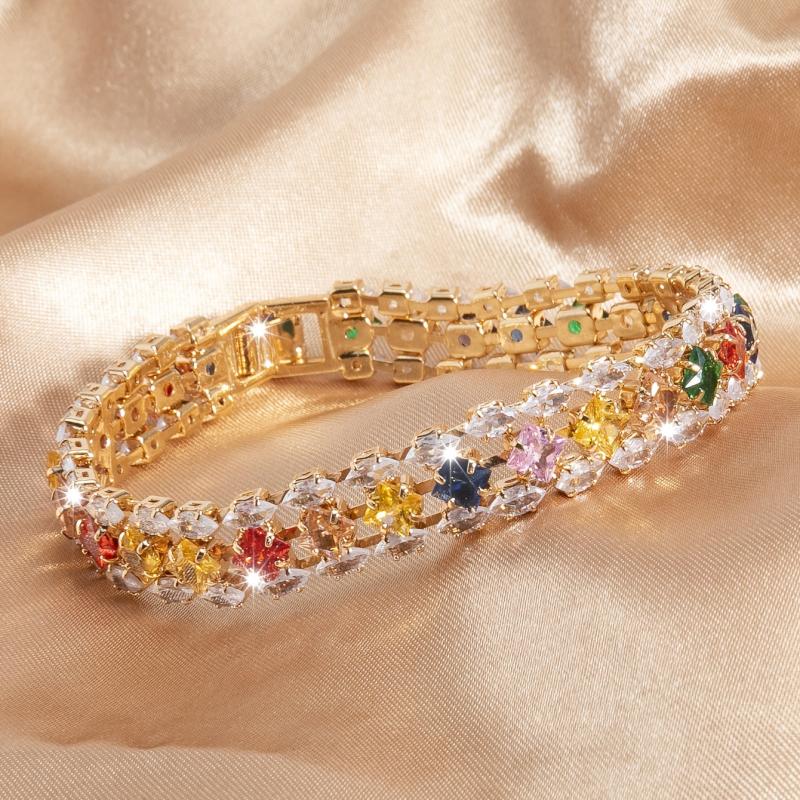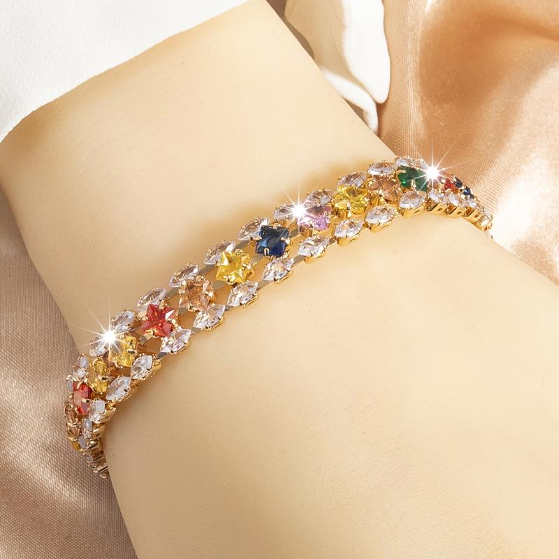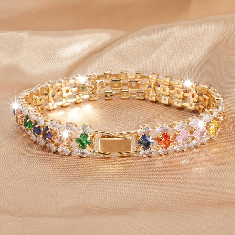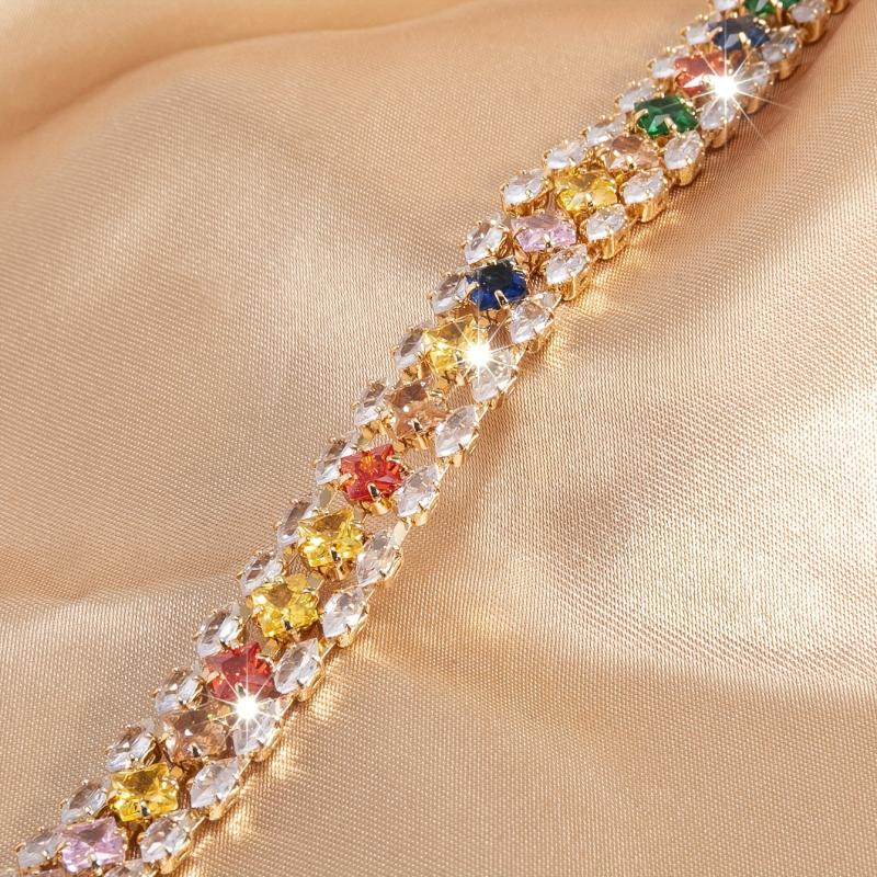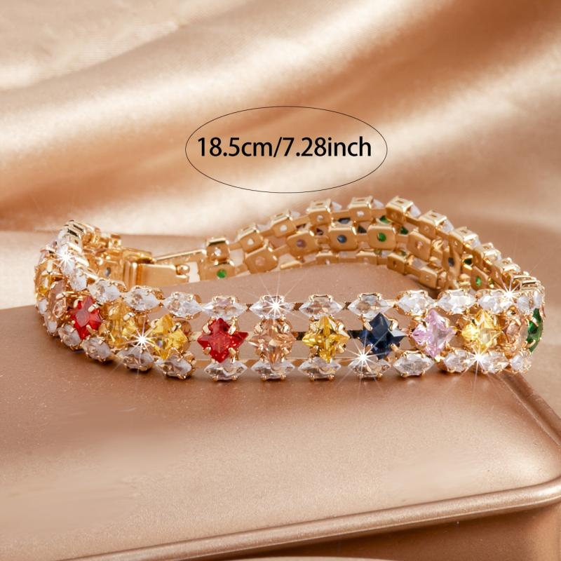 Elegant bracelet featuring mixed square and marquise synthetic zirconia stones. Perfect for weddings, parties, and vacations.