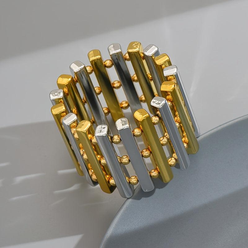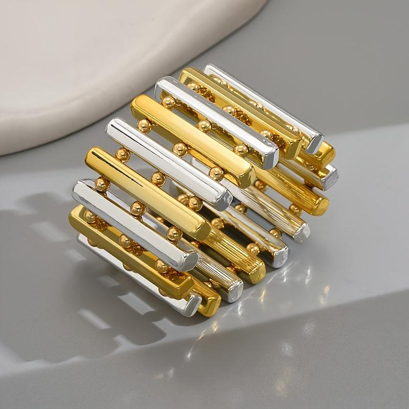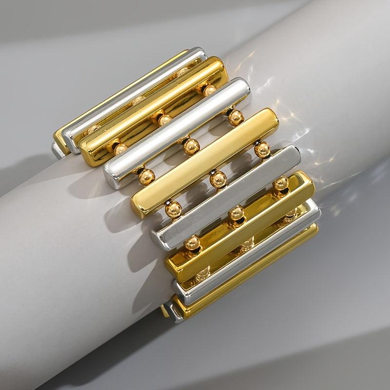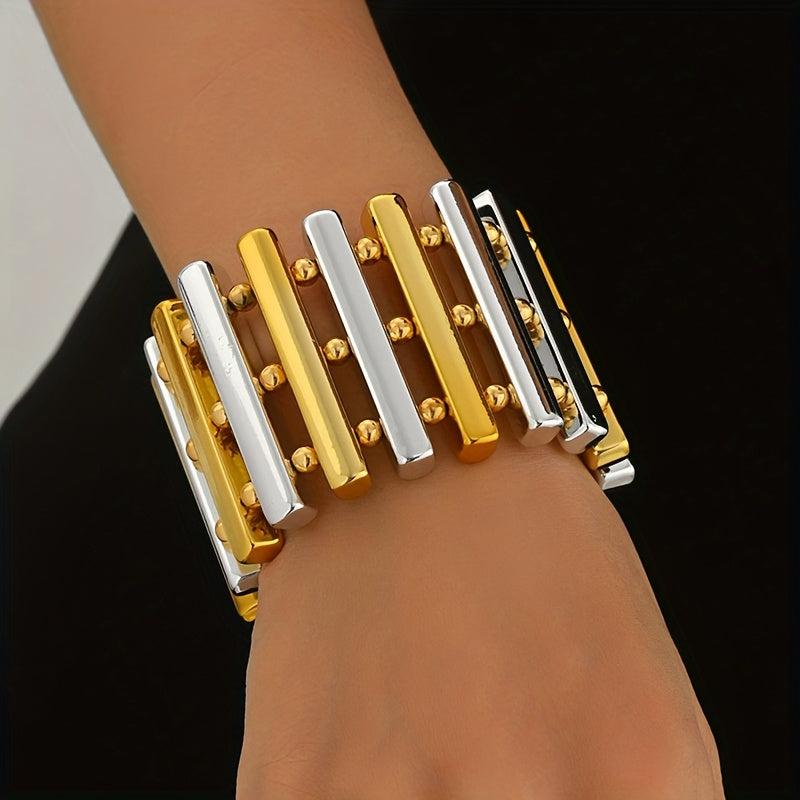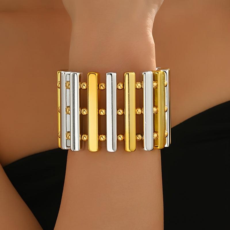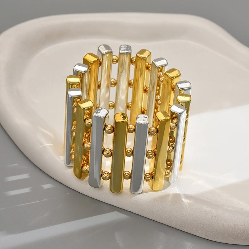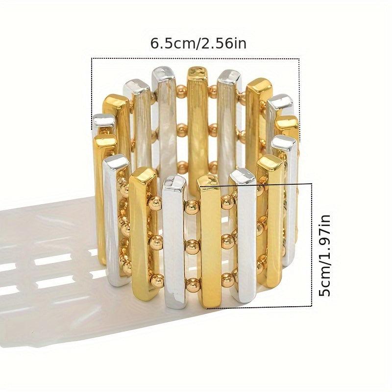 This stylish bracelet is perfect for daily wear and parties. It features a flexible design that is comfortable to wear. The golden and silver toned resin openwork adds a touch of elegance to your look.