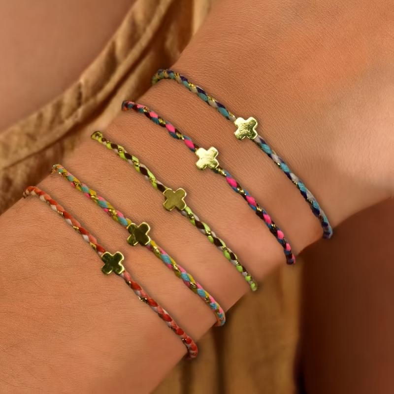 Upgrade your style with this 5-piece set of women's woven bracelets. Featuring a summer Dopamine design, the bohemian bracelets are adjustable and perfect for daily wear, travel, and vacation. Give them as a thoughtful gift!