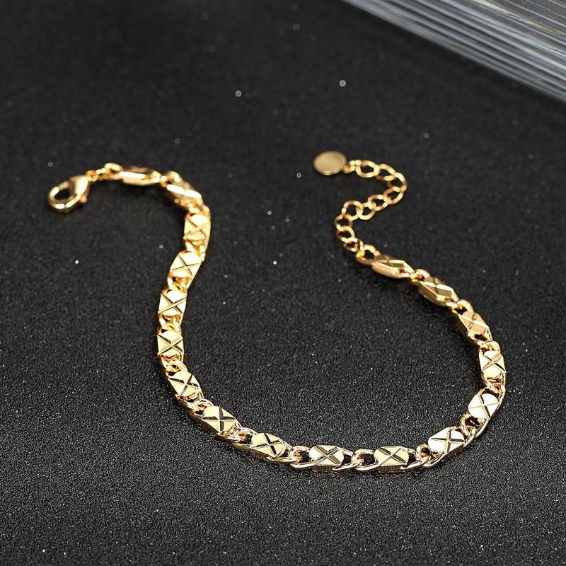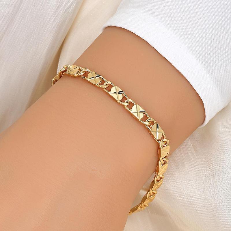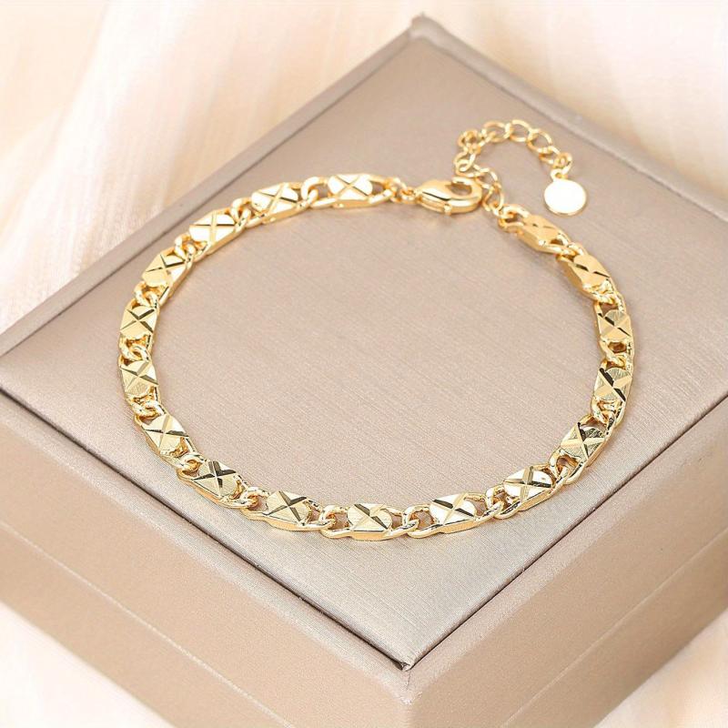 Elevate your style with this X-shaped chain bracelet in a golden tone. Made from durable metal, this geometric textured bracelet is a must-have accessory.