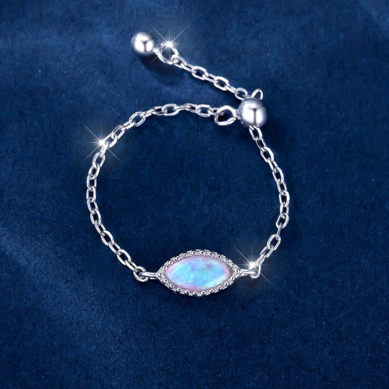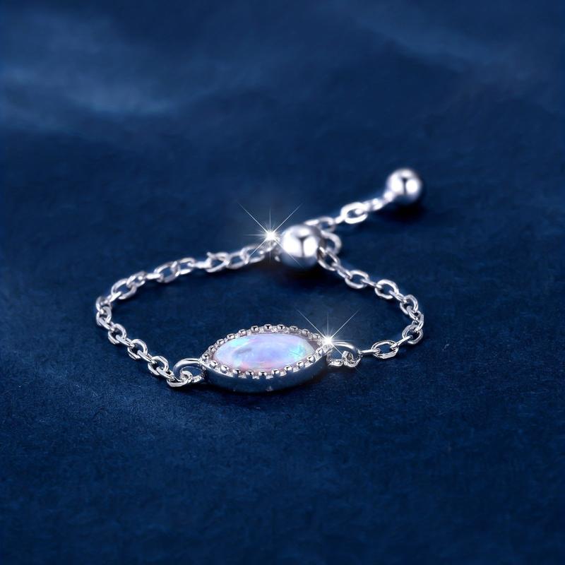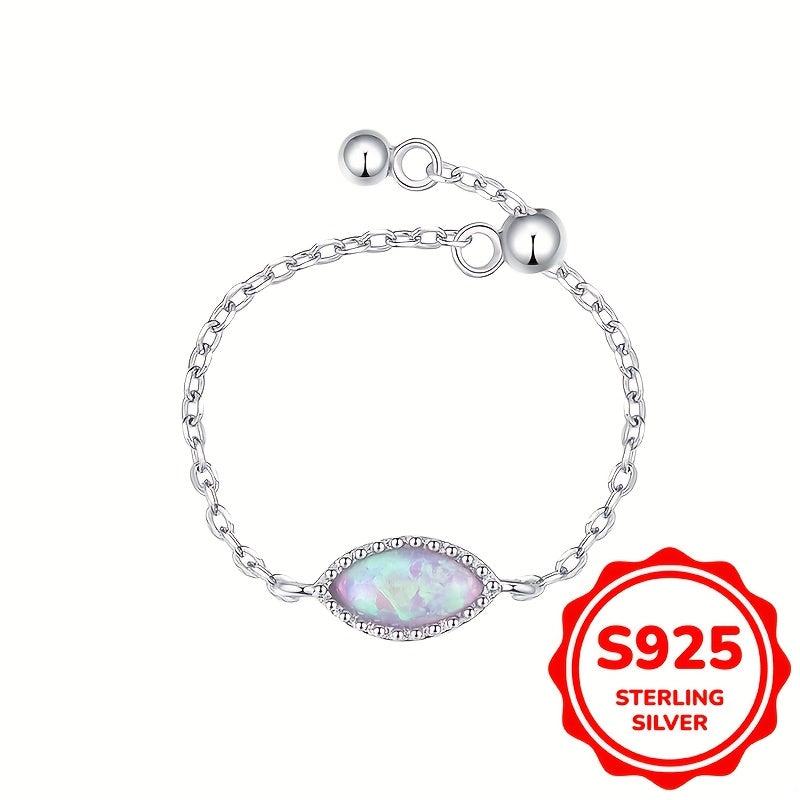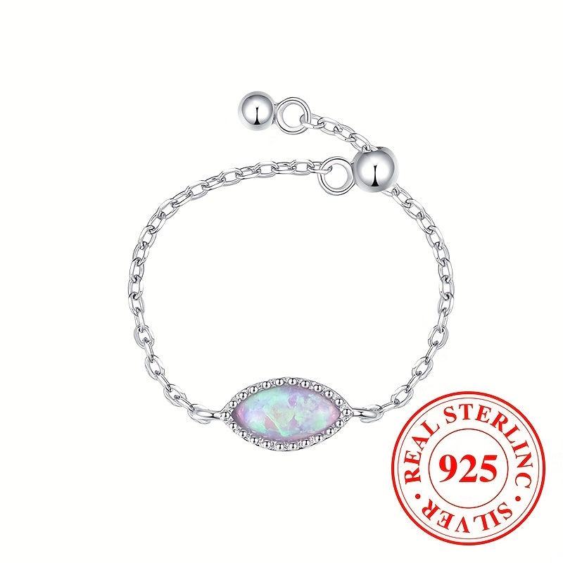 Add a touch of elegance to your outfit with this adjustable opal chain bracelet. Made with 925 silver plated material, this bracelet features oval opal stones that sparkle in any light.