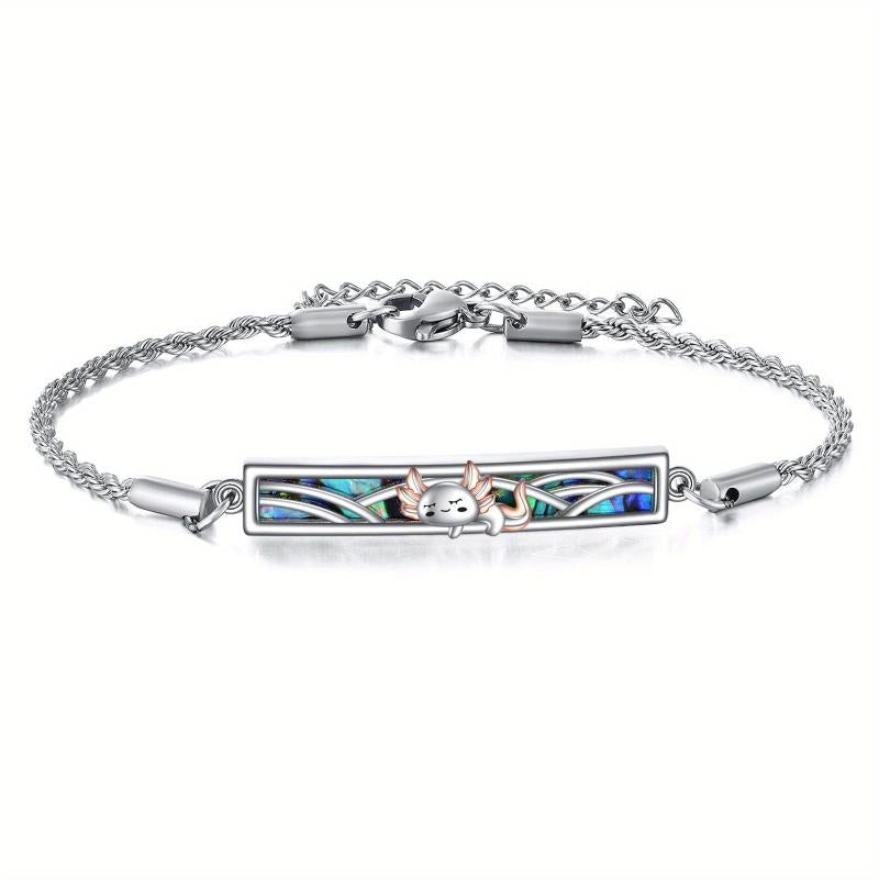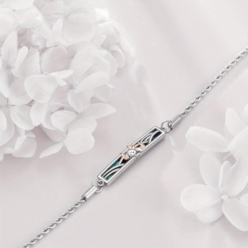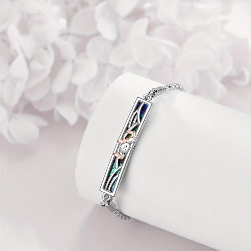 This bracelet features a stylish axle pendant with a synthetic stone, crafted from 925 sterling silver. It is adjustable to ensure a comfortable fit.