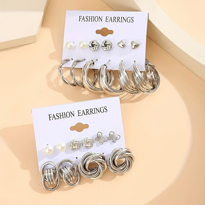 Add a touch of elegance to your look with this 11-piece golden earring set. Perfect for daily wear or festive occasions, these earrings come in various shapes and designs to complement any outfit.
