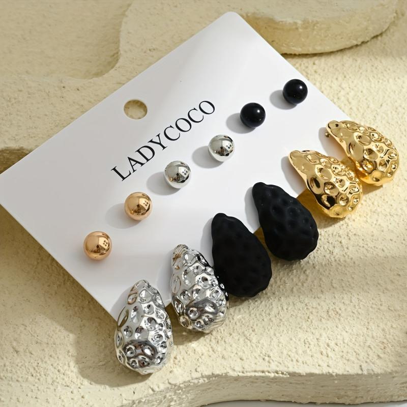 This set includes 12 pairs of teardrop earrings in various geometric shapes. Made of stainless steel, these earrings are perfect for both parties and daily wear.