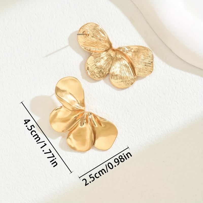 14K Gold Plated Floral Geometric Stud Earrings for Women