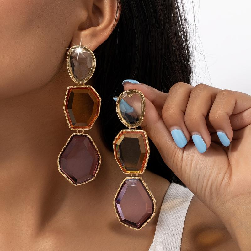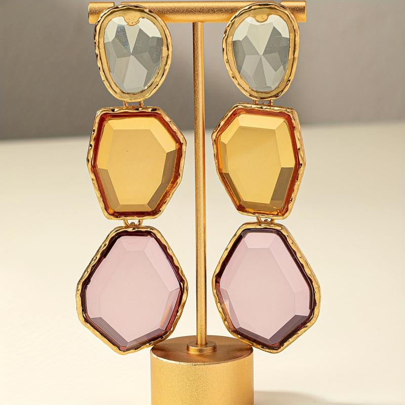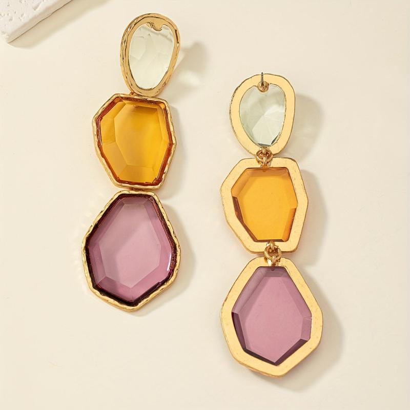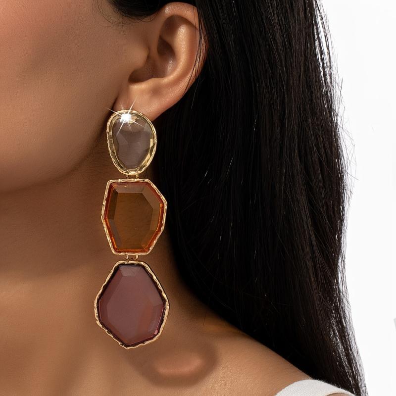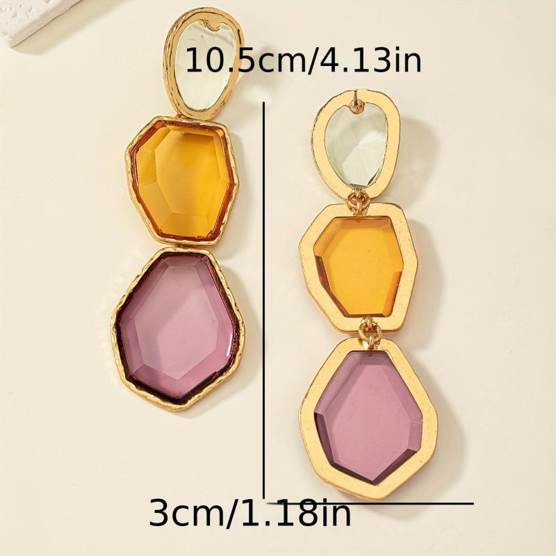 Make a bold statement with these sexy and glamorous drop earrings. Crafted from golden plated zinc alloy, they feature plastic inlays and iron ear hooks. Perfect for all-season wear.