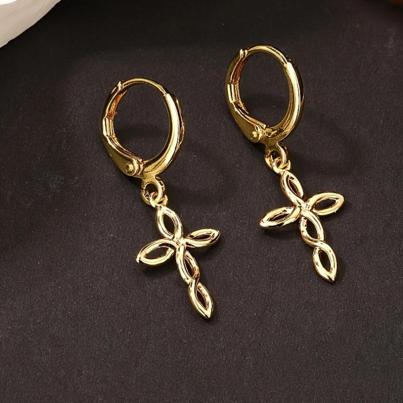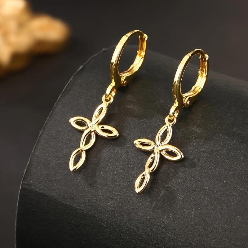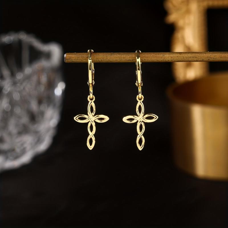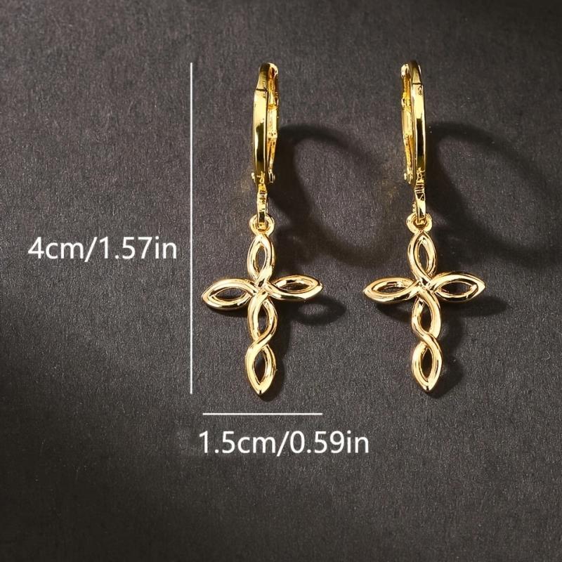 These stylish 18K golden plated gothic cross dangle earrings are perfect for men and women. Made of copper, they are hypoallergenic and suitable for daily wear. A great choice for music lovers and can be worn all season.