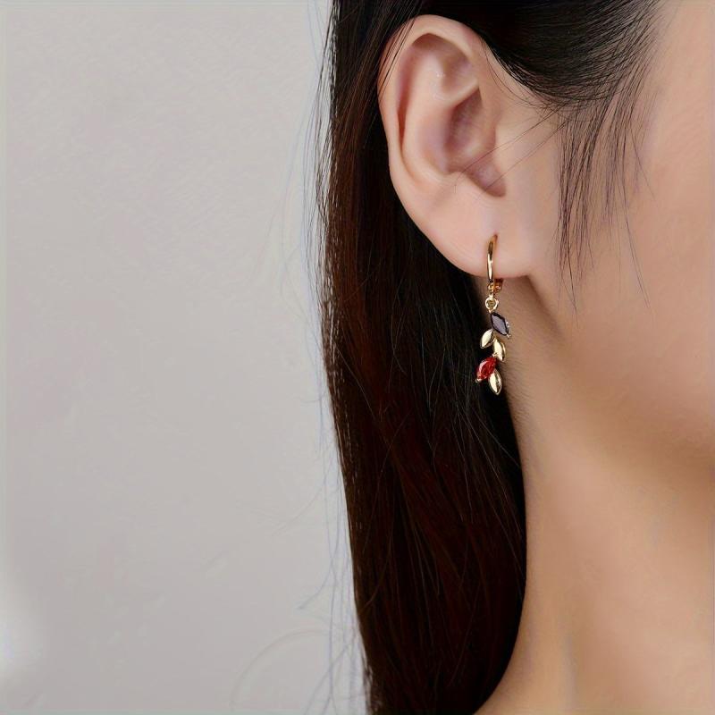 Elevate your style with these trendy earrings featuring a unique design of wheat and leaf with colorful cubic zirconia. Perfect for parties or casual wear.