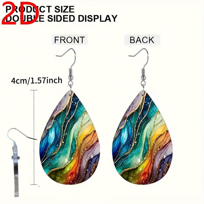 These 2D acrylic earrings feature a stunning marble pattern with a gradient rainbow luminance, making them the perfect gift for Halloween, Christmas, anniversaries, and birthdays. They are versatile accessories that can elevate any outfit.