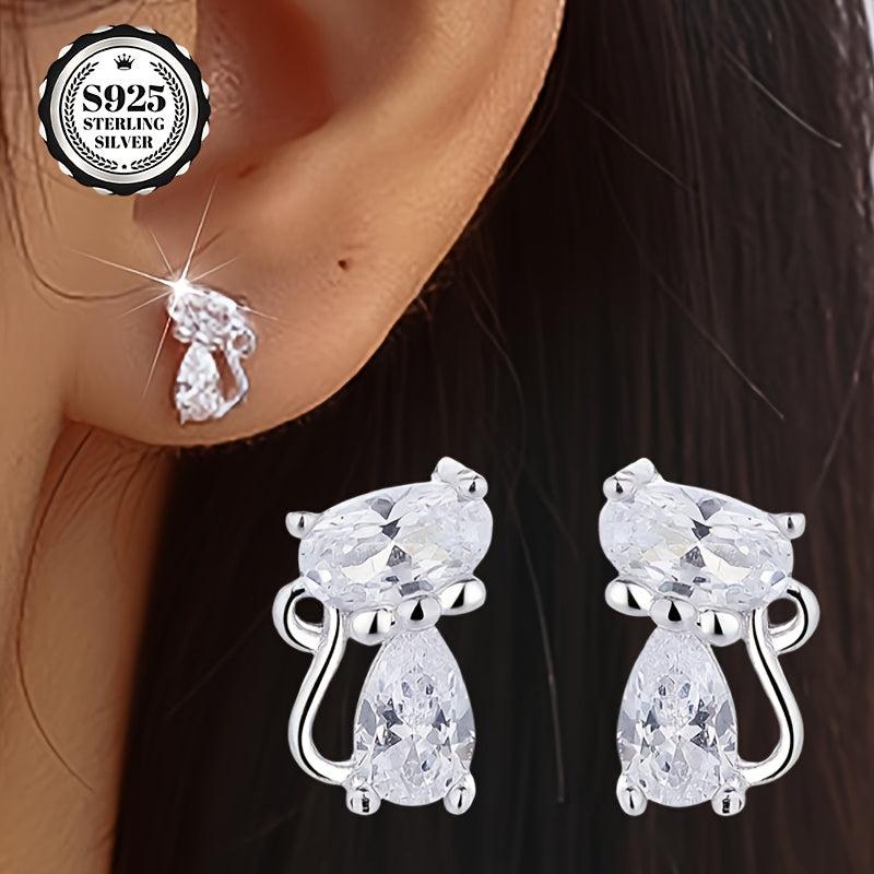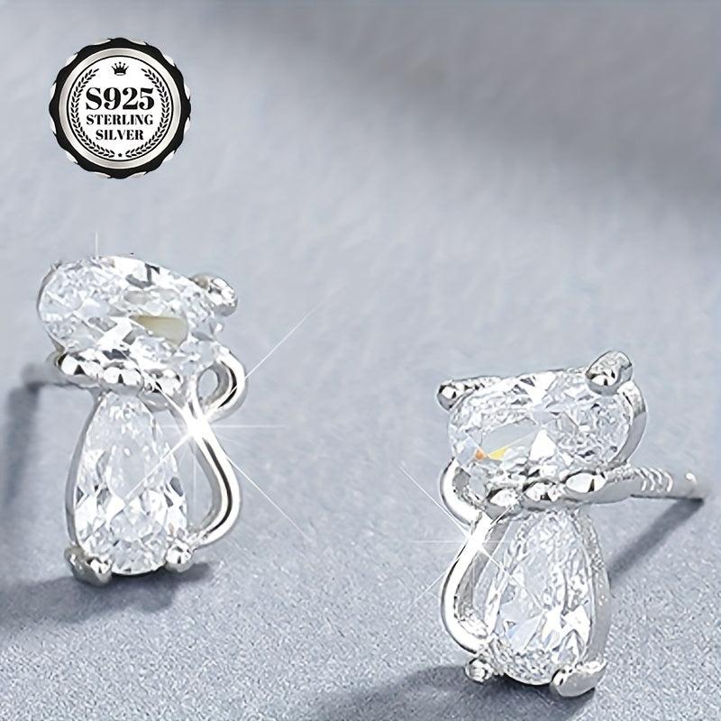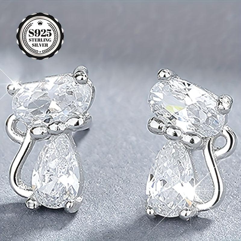 Adorn your ears with these cute cat earrings featuring synthetic zirconia studs. Made of pure silver, they are perfect for everyday wear.