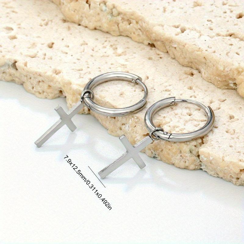 2pcs Stainless Steel Cross Pendant Earrings Golden Retro Hip Hop Style