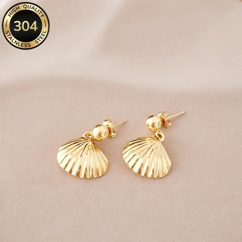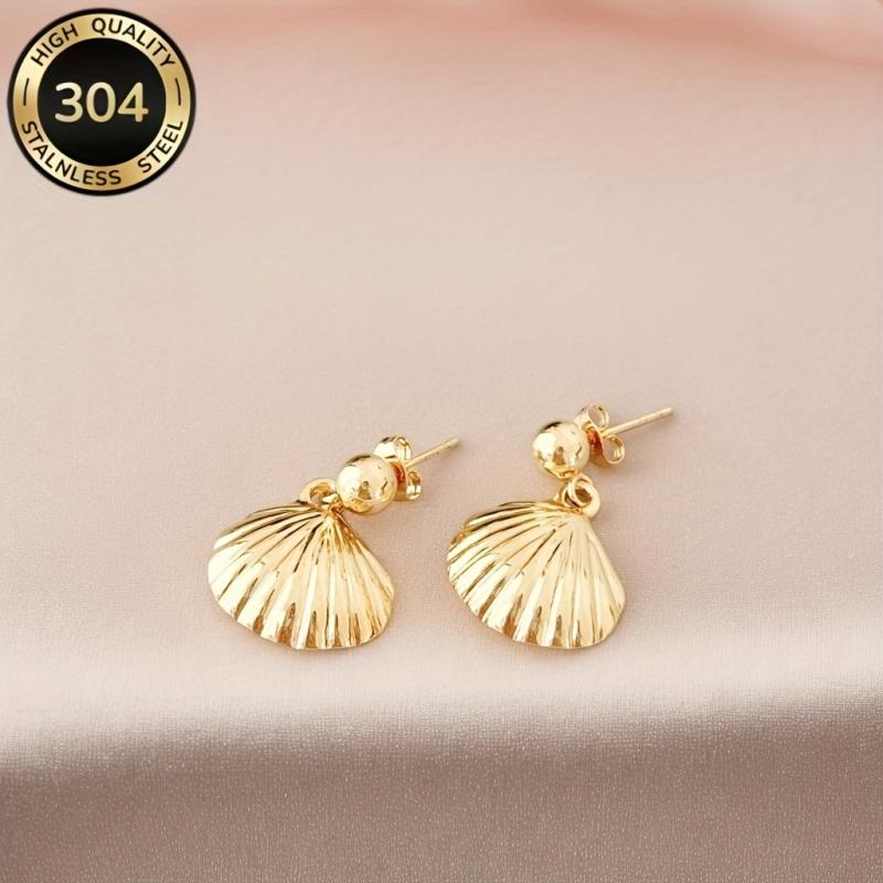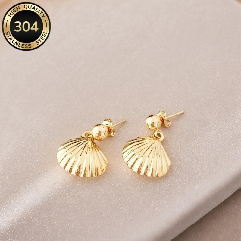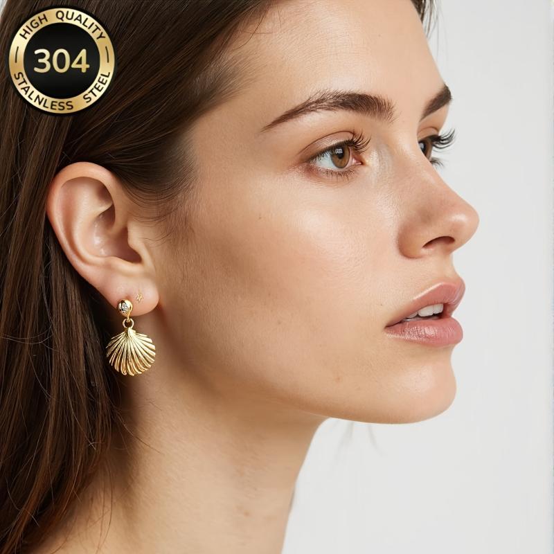 2pcs Stainless Steel Shell Earrings Hypoallergenic Nautical Style