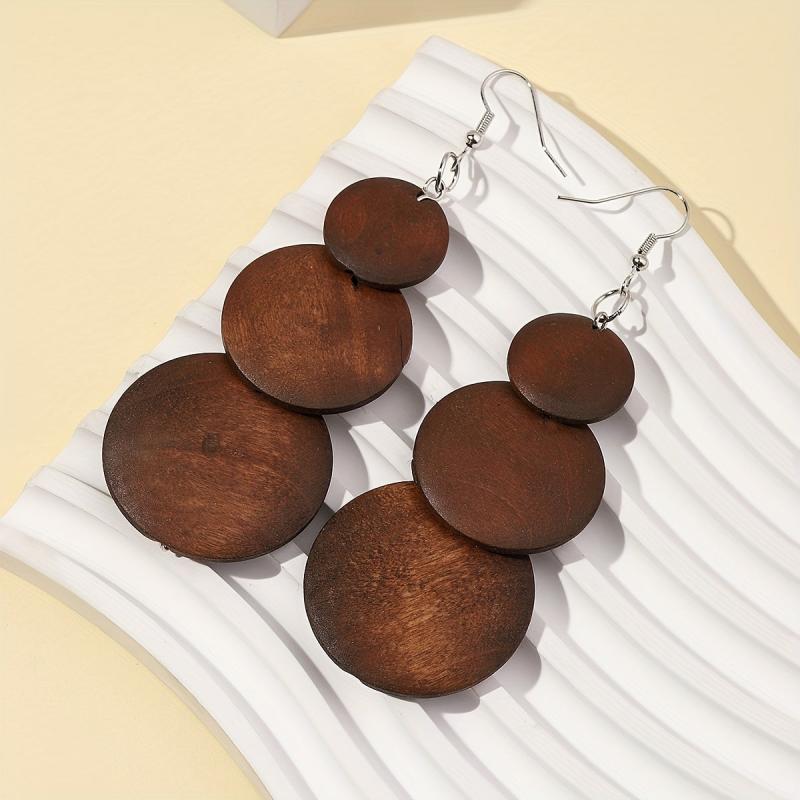 These unique wooden dangle earrings are perfect for adding a retro touch to your fall and winter outfits. They feature a combination of brown and green colors, making them versatile and stylish. Lightweight and hypoallergenic, these earrings are comfortable to wear all day long.