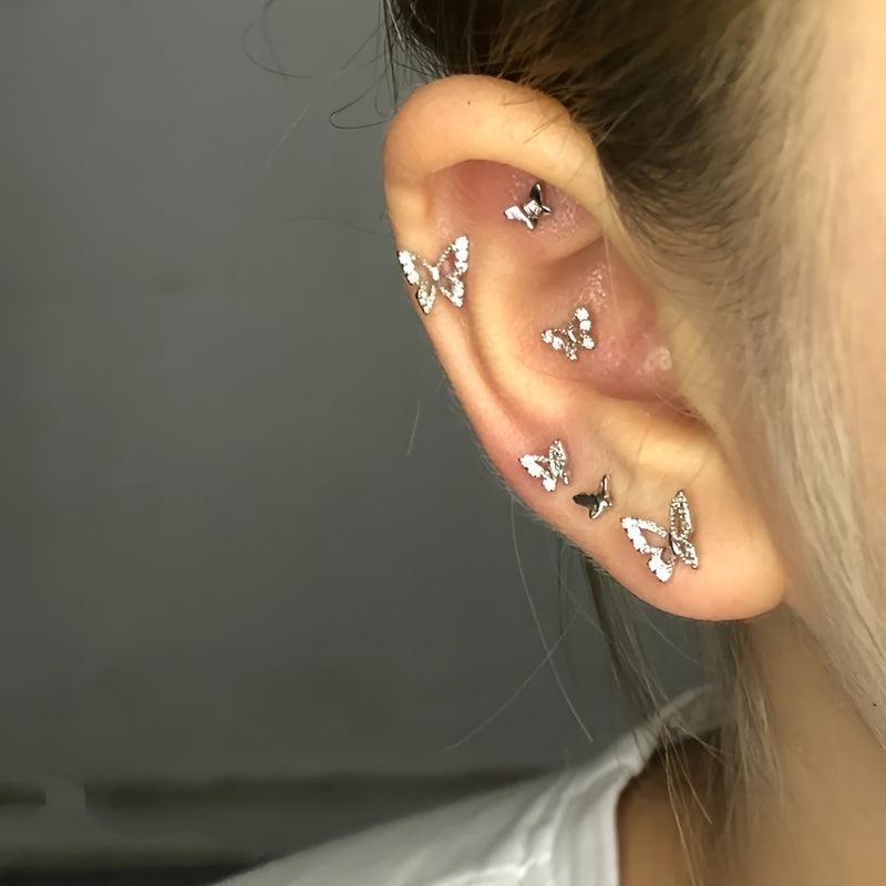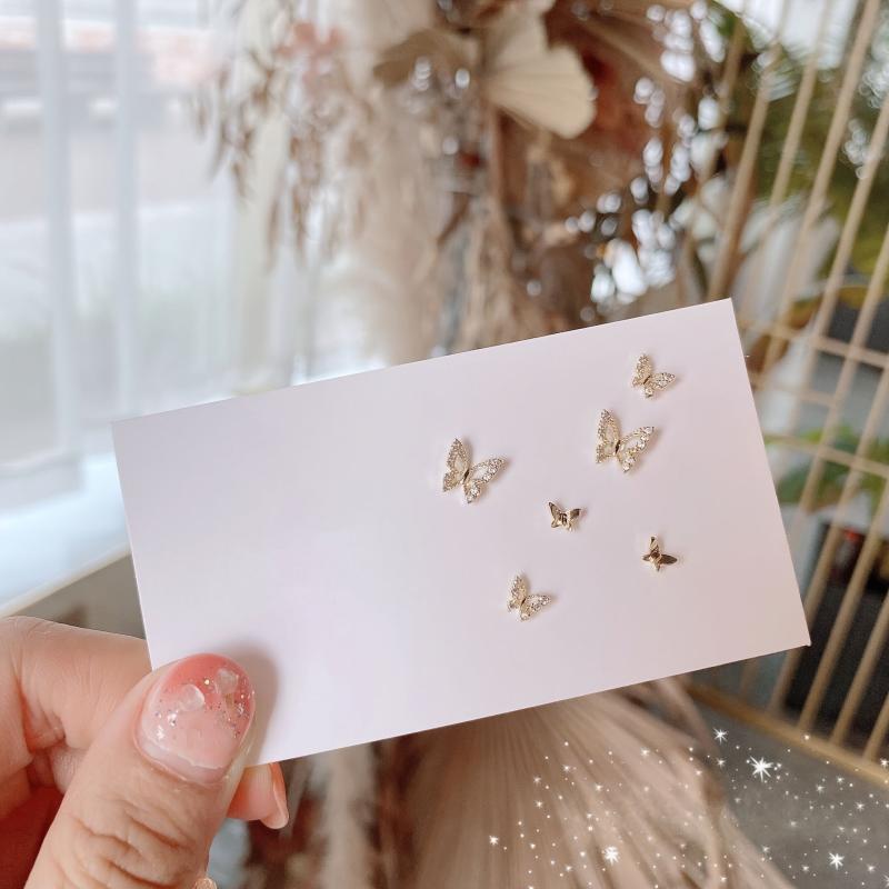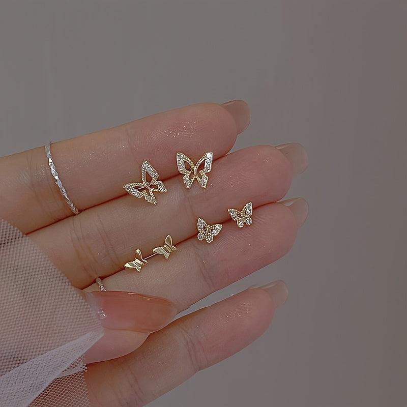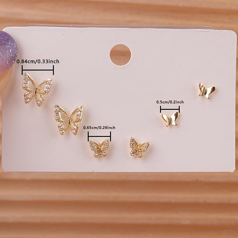 Enhance your style with this set of 3 small and flexible butterfly earrings, perfect for daily wear and parties. Ideal holiday accessory for a fashionable look.