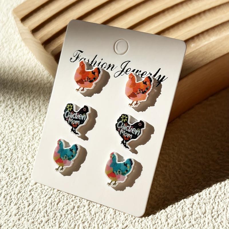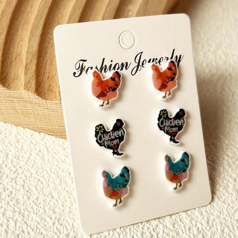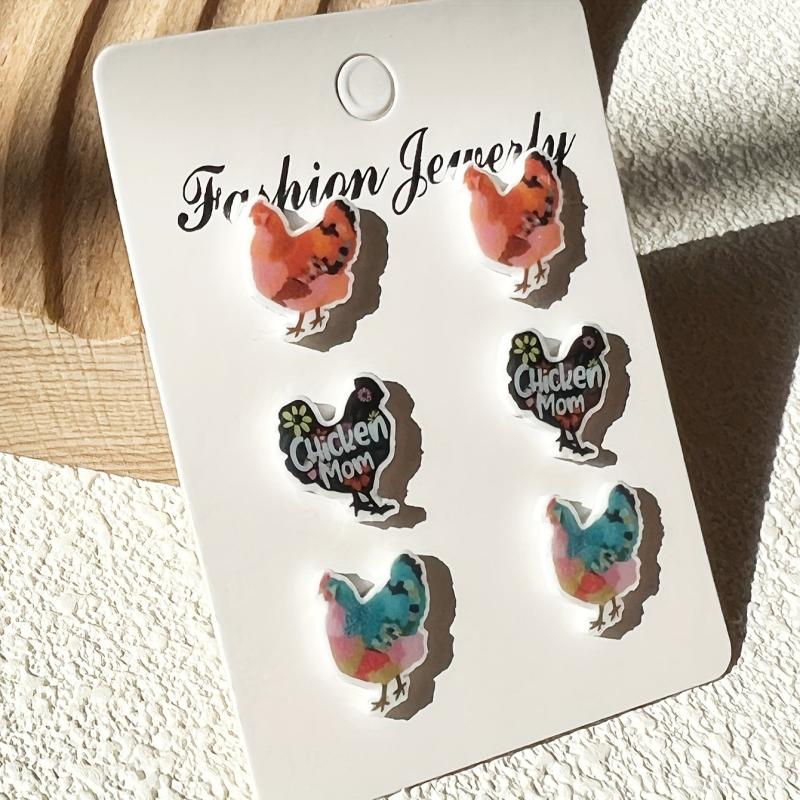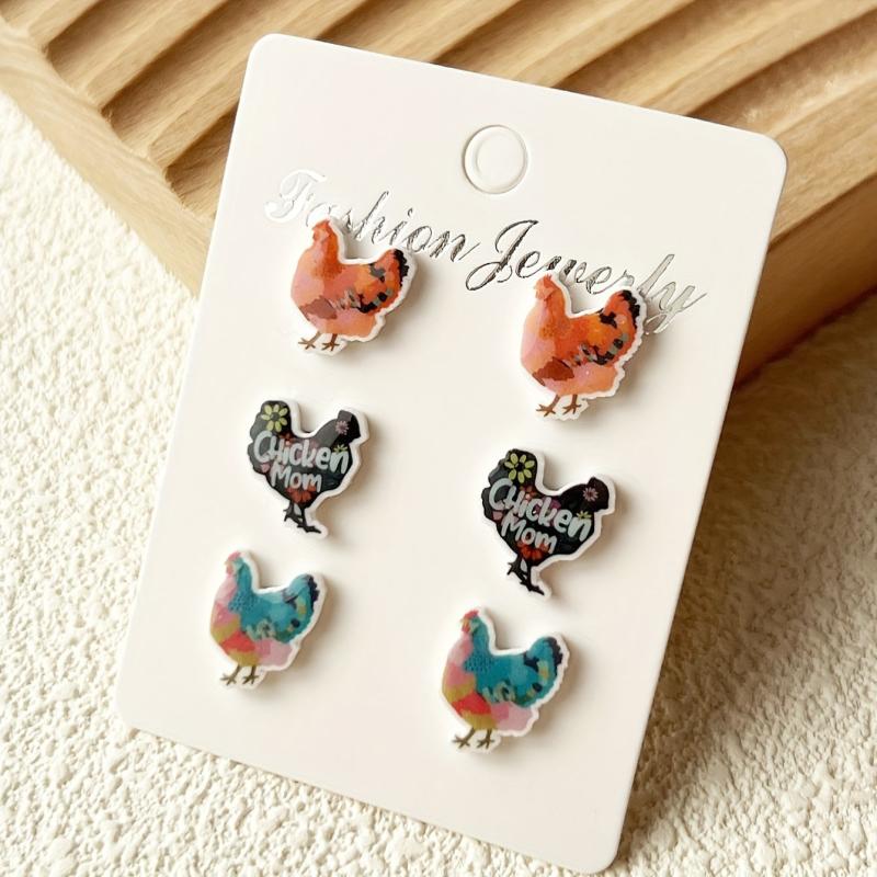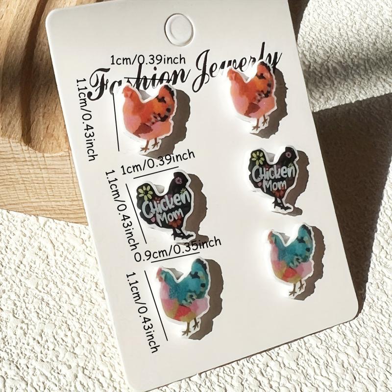 Adorable set of hen-shaped ear studs made of heat shrink material. Perfect for animal lovers and cartoon enthusiasts.