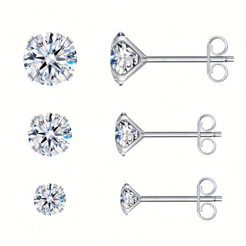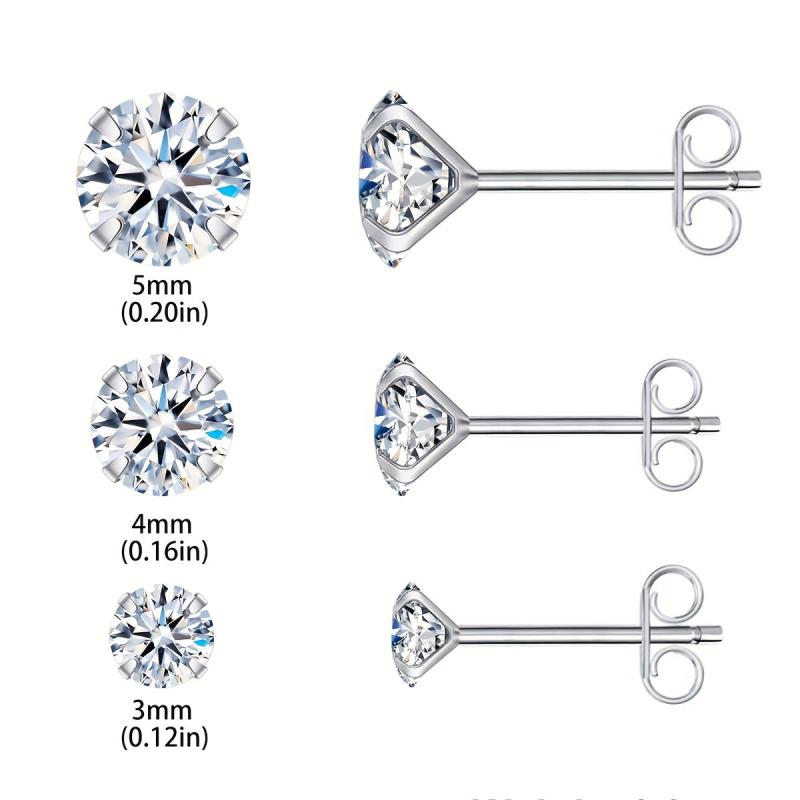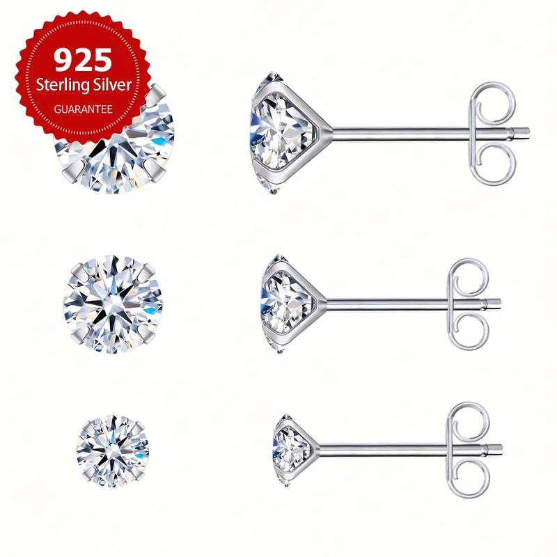 This set includes three pairs of classic sparkling stud earrings made of 925 sterling silver, perfect for holiday parties, dates, and everyday wear. They are hypoallergenic and make a great gift for women.