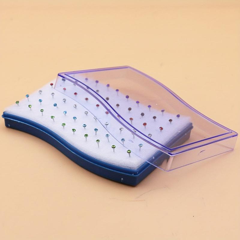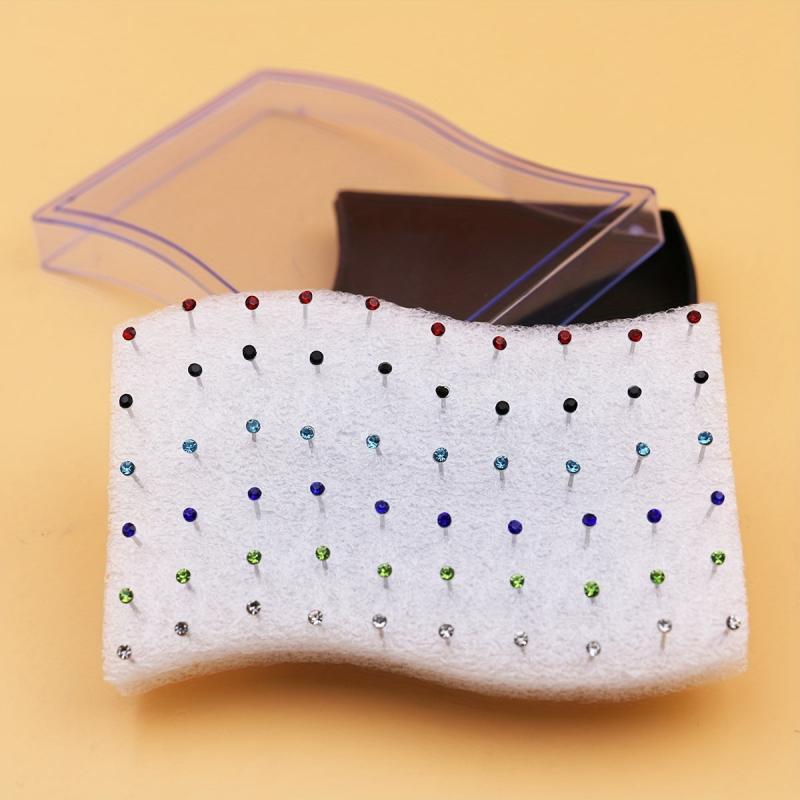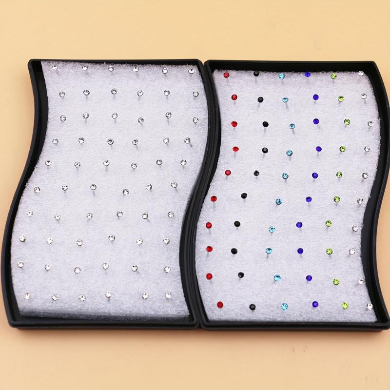 Get this boxed set of 30 pairs of mini stud earrings featuring randomly mixed colored small rhinestones. Each earring has a 2mm rhinestone and is made with iron needle ear sticks.