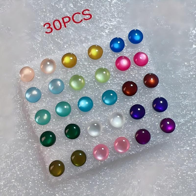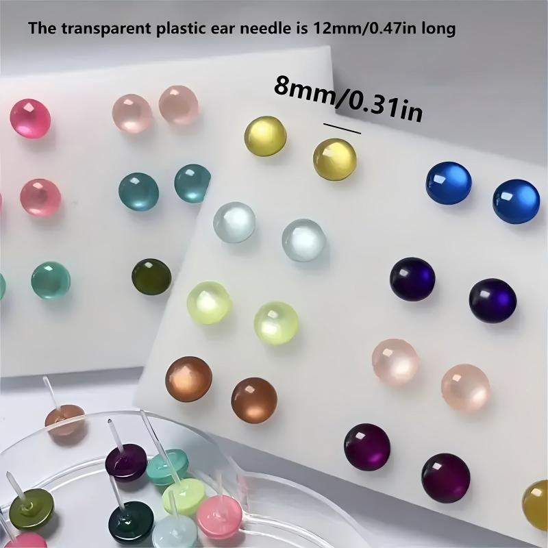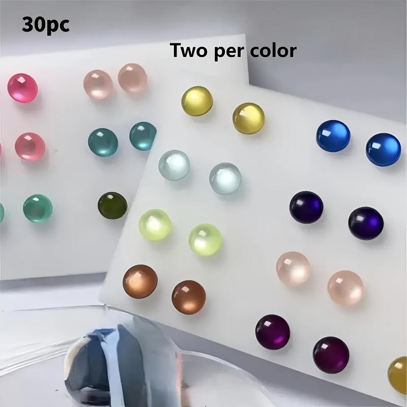 Add a touch of elegance to your outfits with this set of 30 French cat eye resin earrings. These minimalist plastic studs are suitable for all seasons, making them a versatile accessory for any occasion.