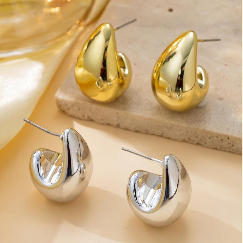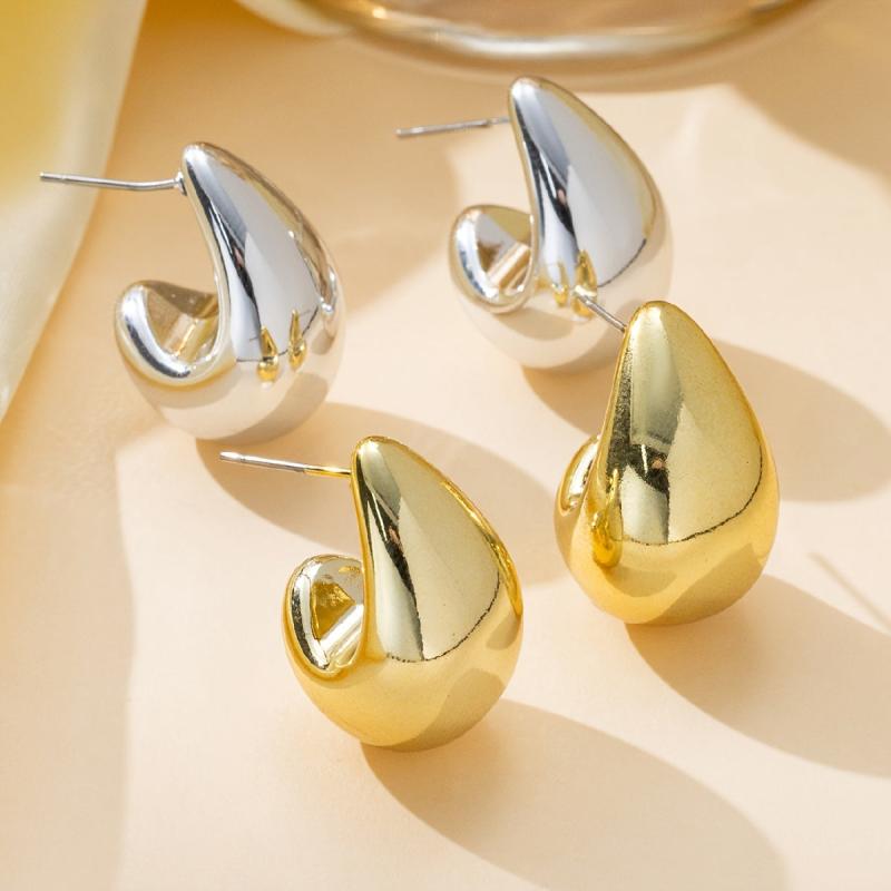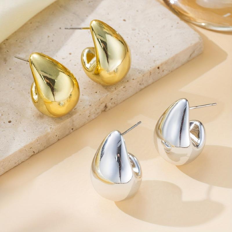 This set includes 4 lightweight teardrop earrings in golden and silvery tones, perfect for adding a touch of elegance to your daily outfits.