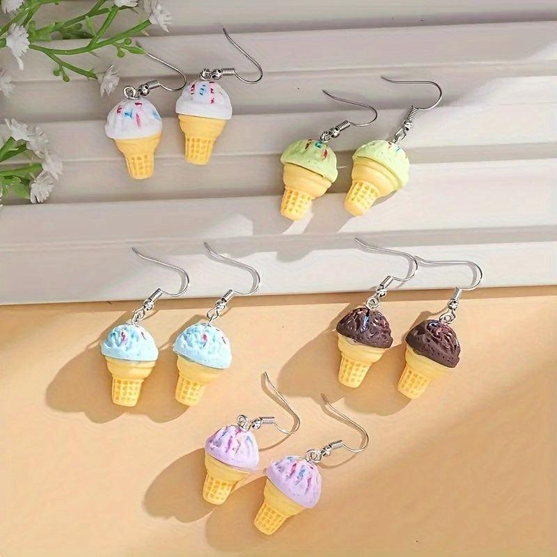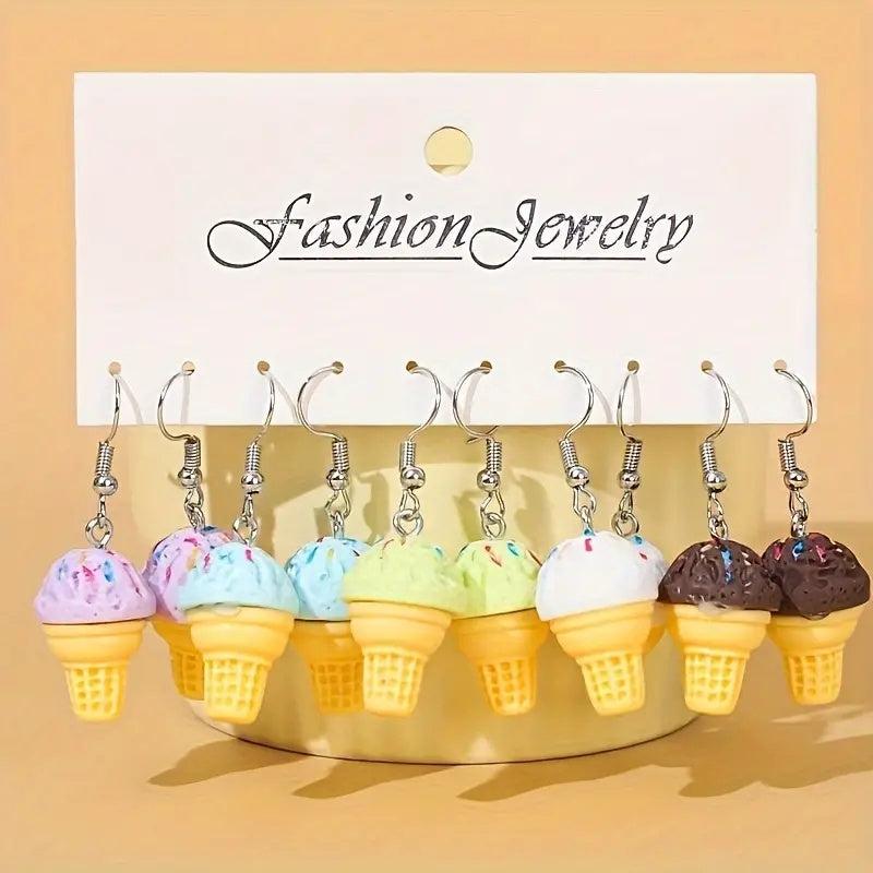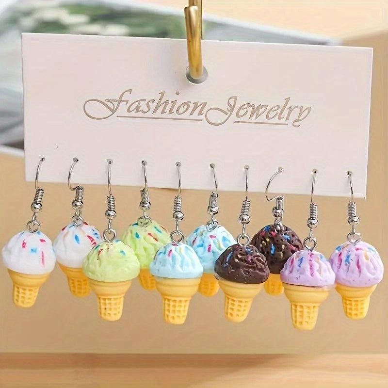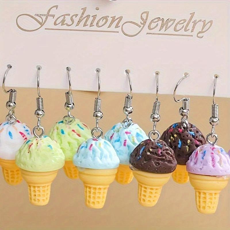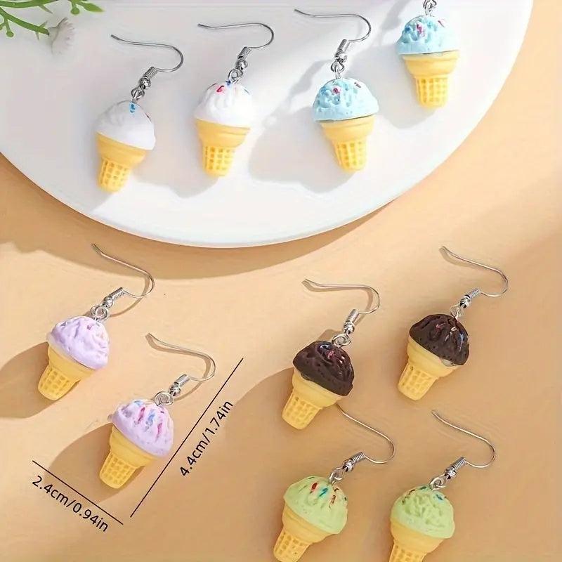 Add a sweet touch to your outfit with these ice cream dangle earrings. Perfect for parties, gifts for women, mothers, family, or friends.