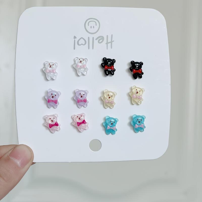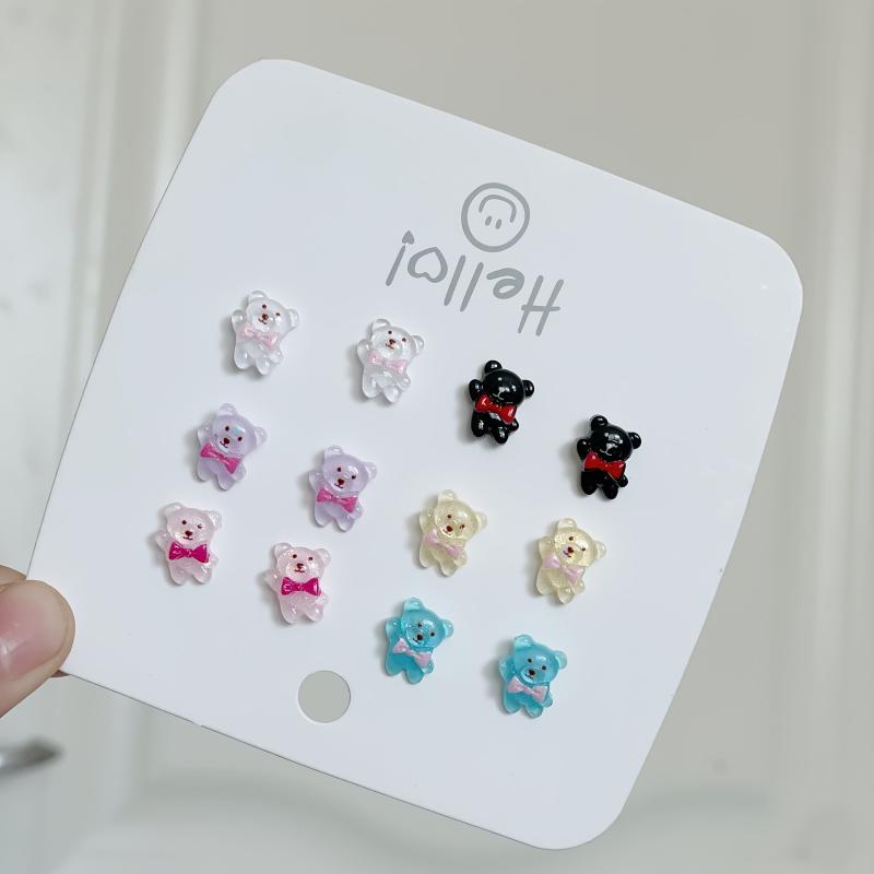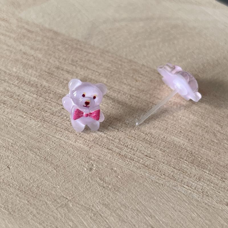 These cute bear earrings are perfect for daily wear or parties. Made of colorful resin, they are hypoallergenic and safe for all-day use. Add a playful touch to your outfit with these fun earrings.