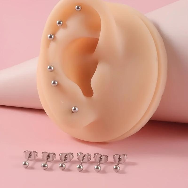 Elevate your everyday look with this set of 6 pairs of stylish and minimalist earrings. Perfect for various occasions, these earrings are versatile and chic.