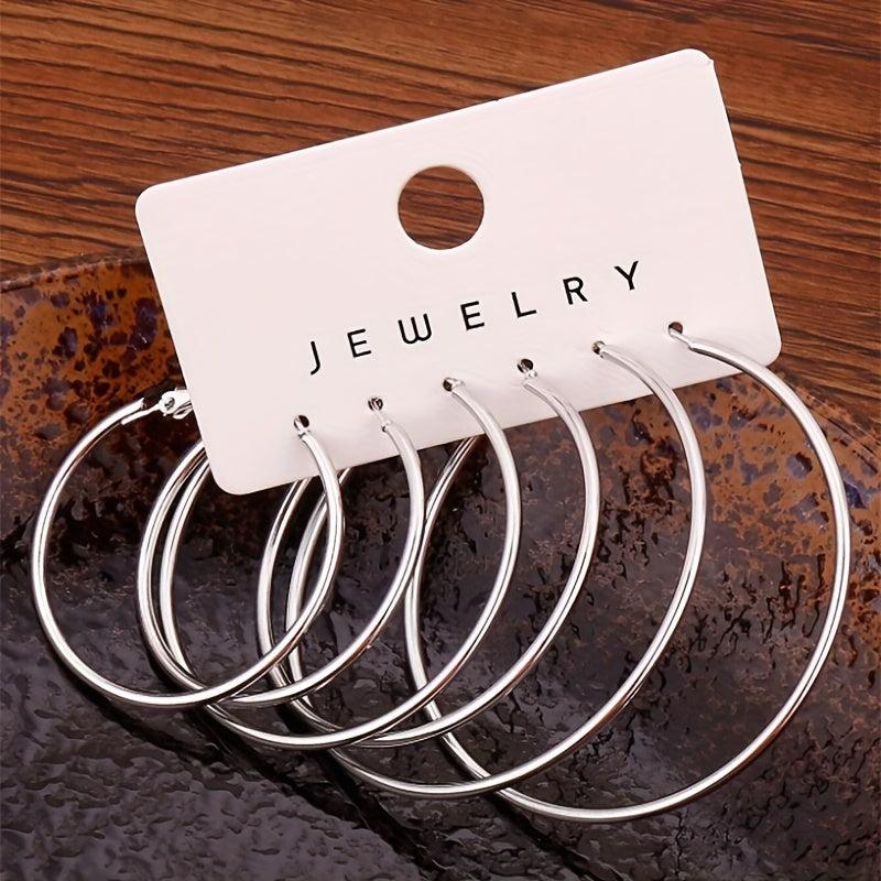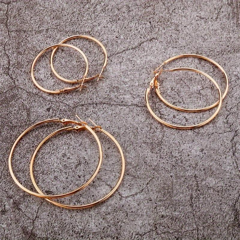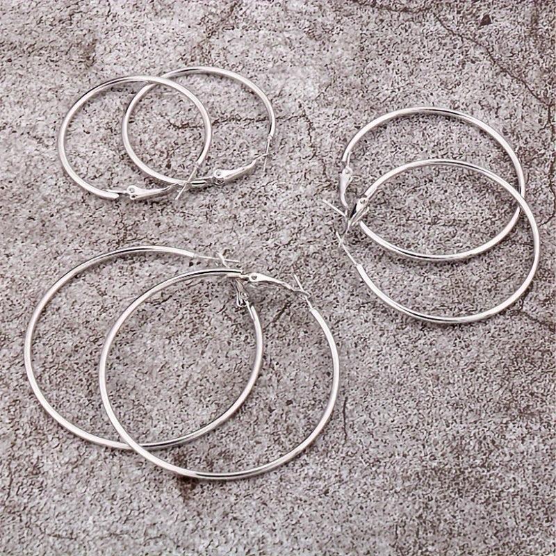 Elevate your style with this set of 6 stainless steel hoop earrings. Perfect for daily wear or special occasions. A must-have for any fashion-forward woman.