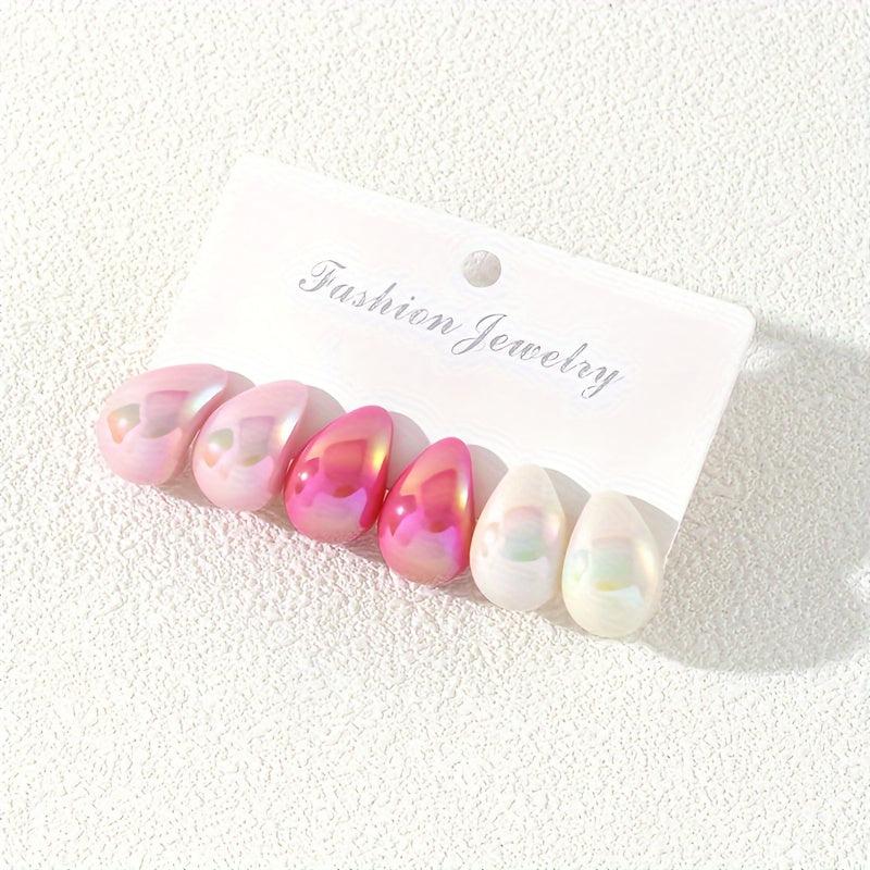 Elevate your style with this 6-piece minimalist pink series drop & dangle earring set. Made with stainless steel ear needles, these earrings are suitable for daily wear and add a touch of elegance to any outfit.