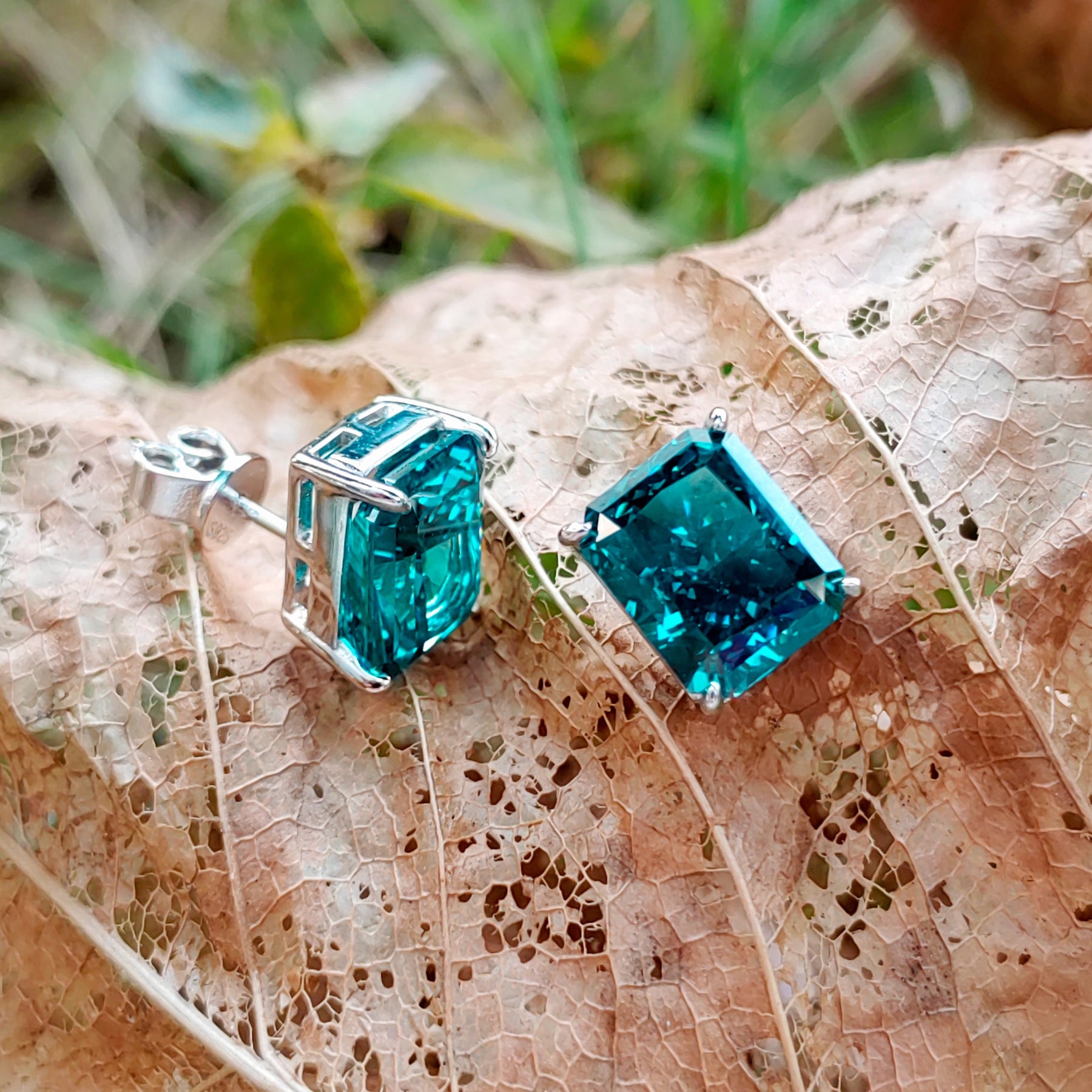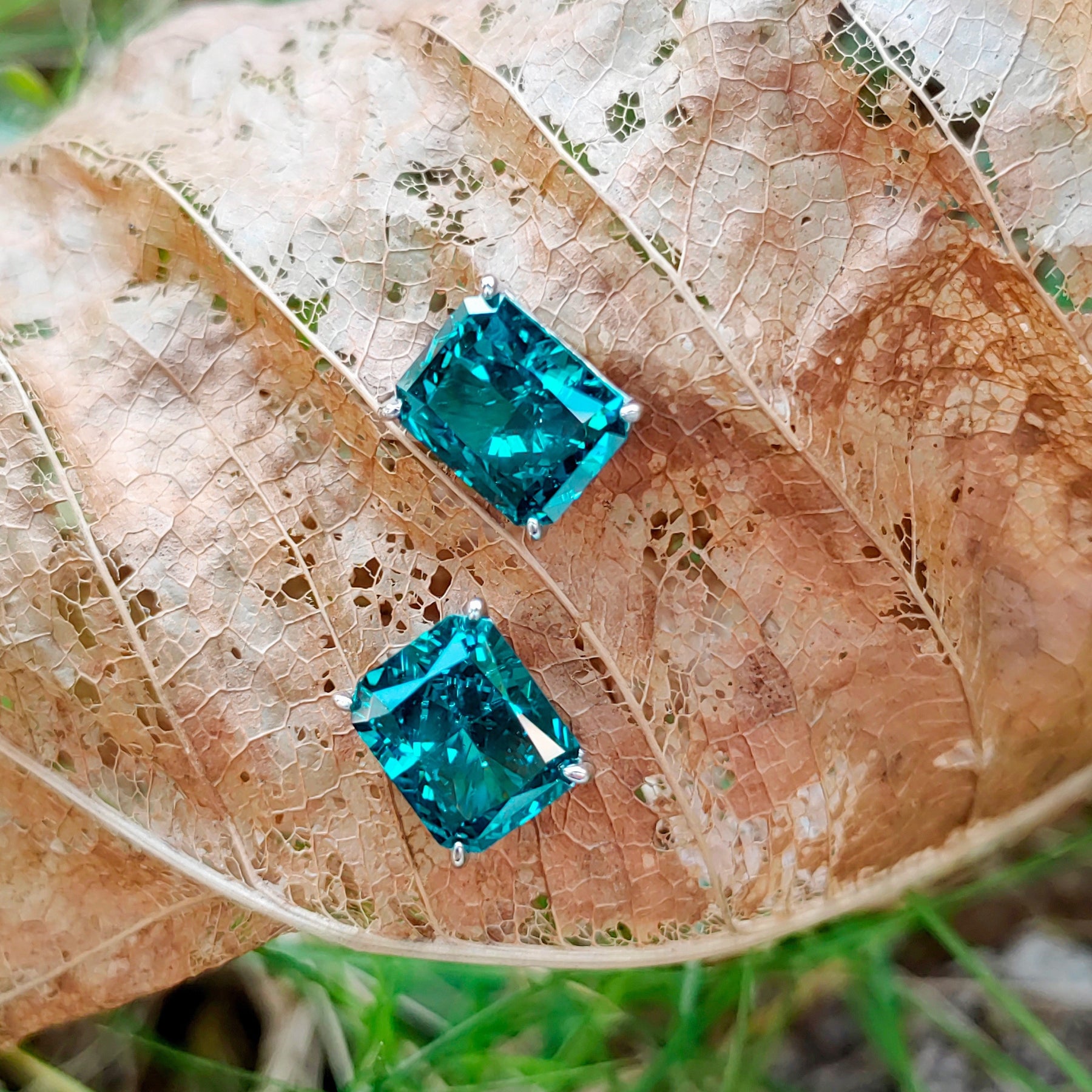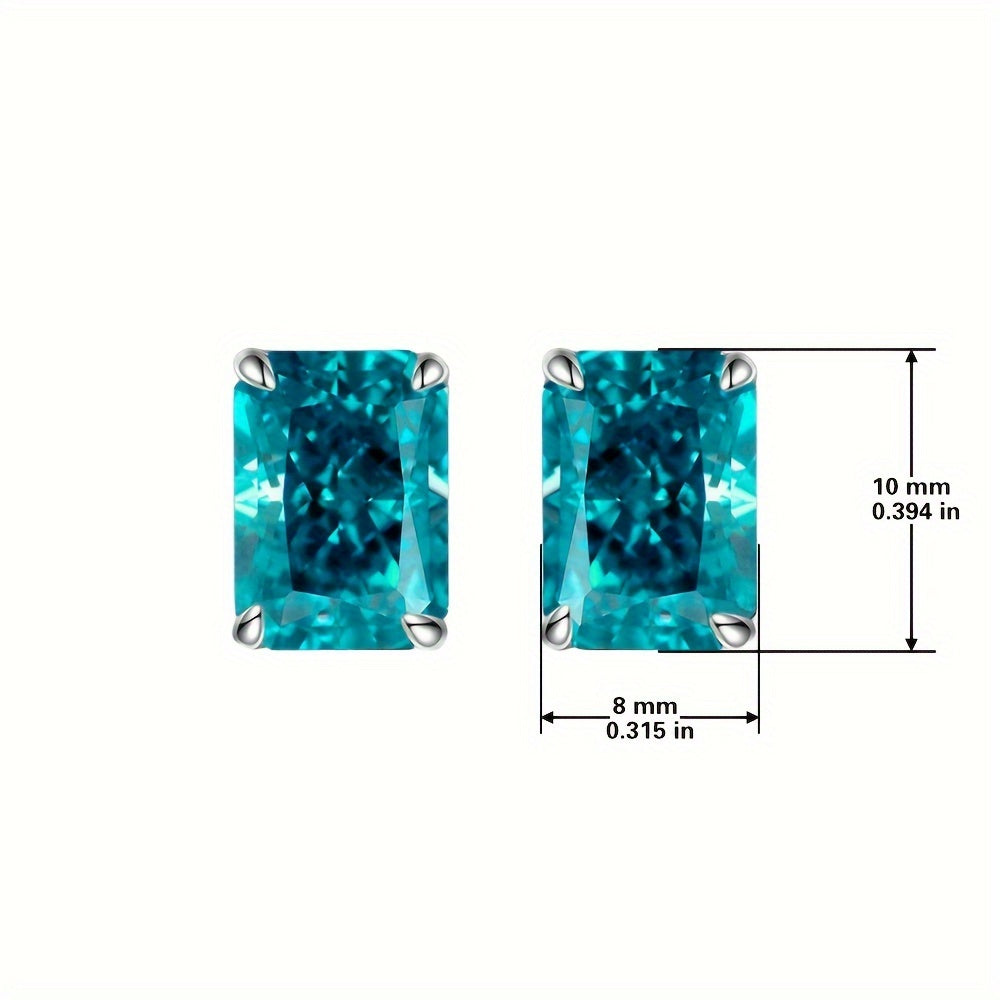 These stunning stud earrings feature 7 carat synthetic cubic zirconia with a bluish ink color. They are crafted in S925 sterling silver and golden fine metals, setting off the 5A good ice cut perfectly.