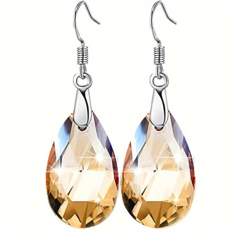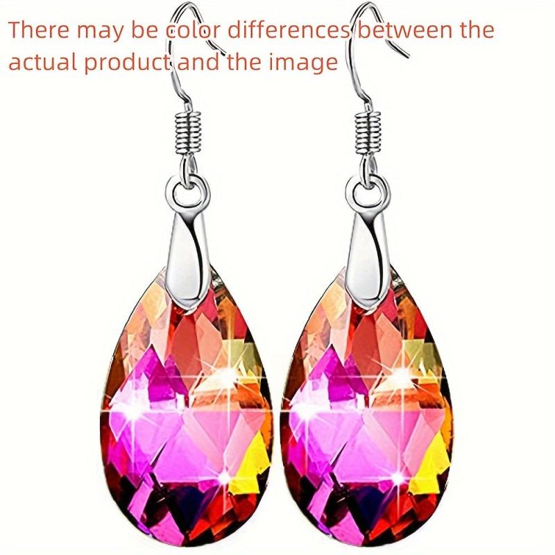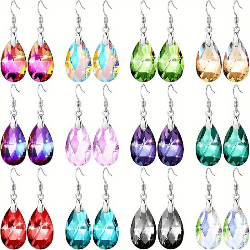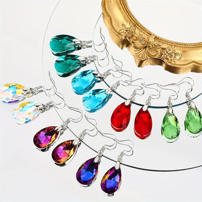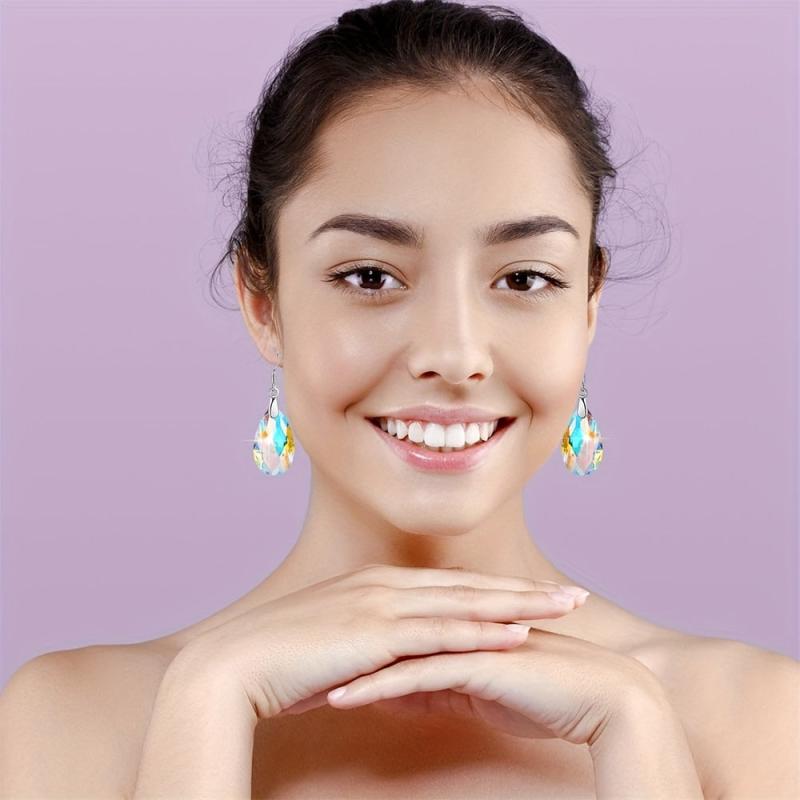 These teardrop earrings feature 8 rainbow-colored glass faceted drops, making them a stunning gift for your girlfriend or family. The versatile design is ideal for daily wear.