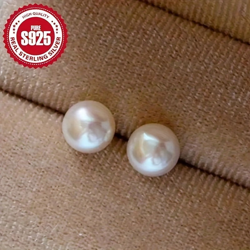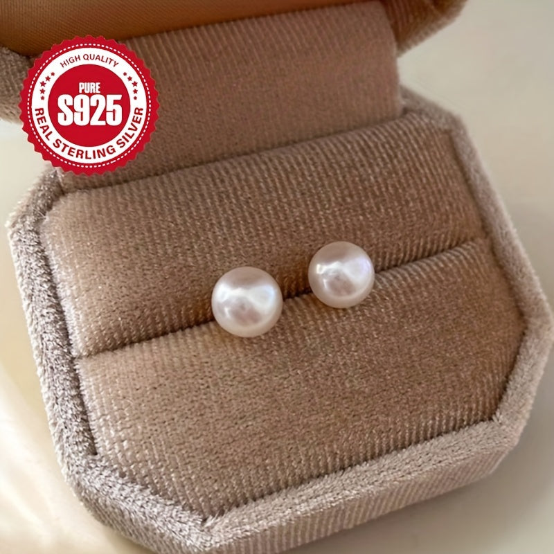 These elegant silvery imitation pearl stud earrings are perfect for women and mothers. They have low allergy properties and are a great gift option.
