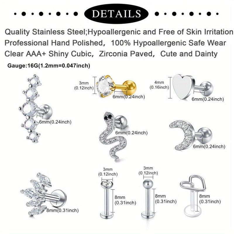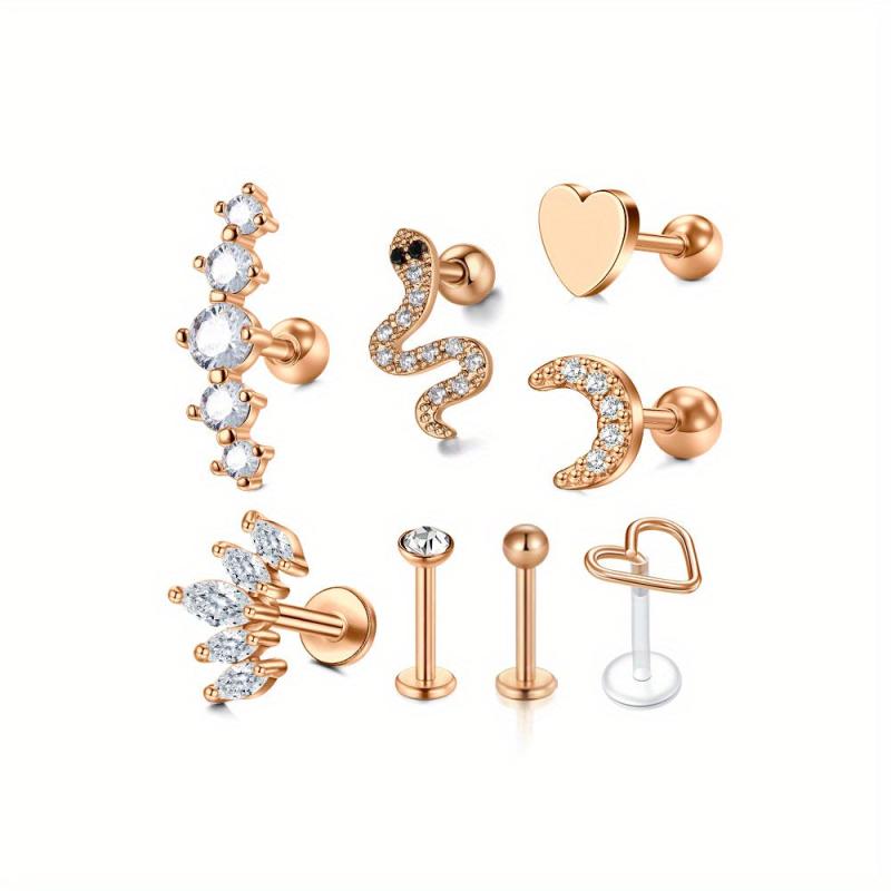 Elevate your style with this 8-piece set of delicate cartilage stud earrings featuring synthetic zirconia inlays. Perfect for pierced ears, this jewelry set is ideal for adding a touch of sophistication to your look.