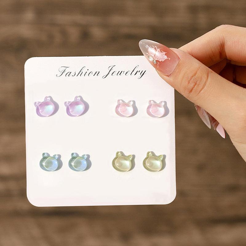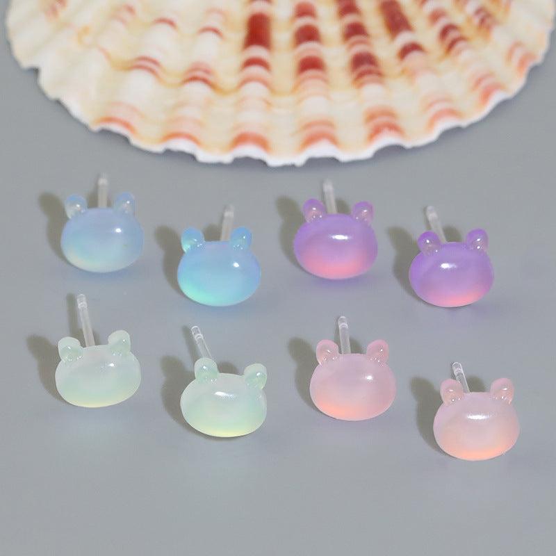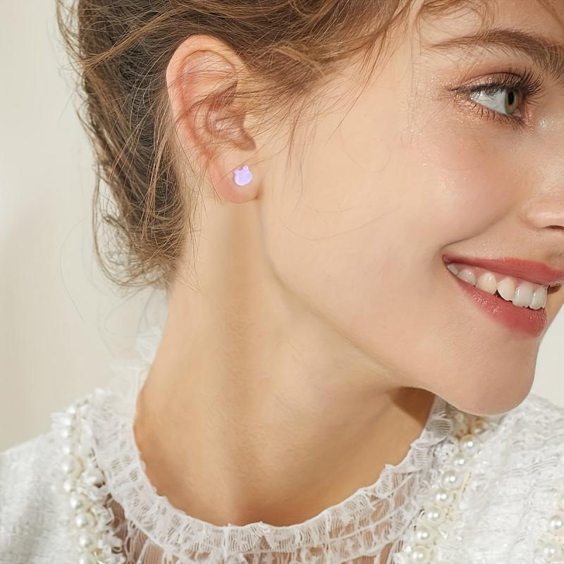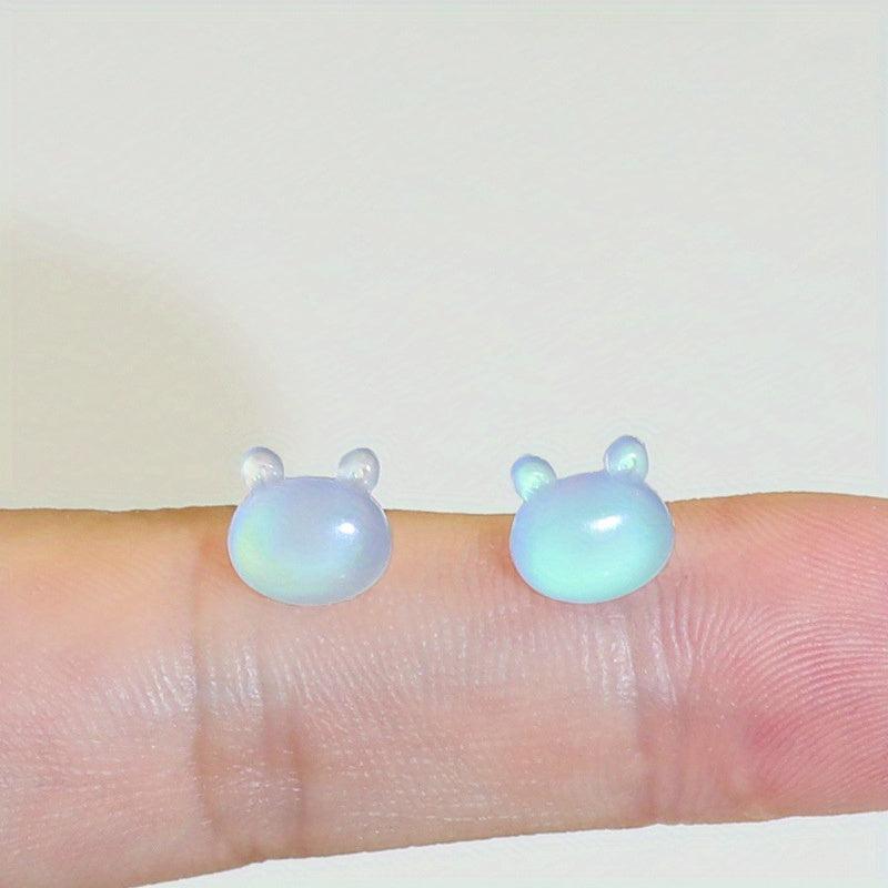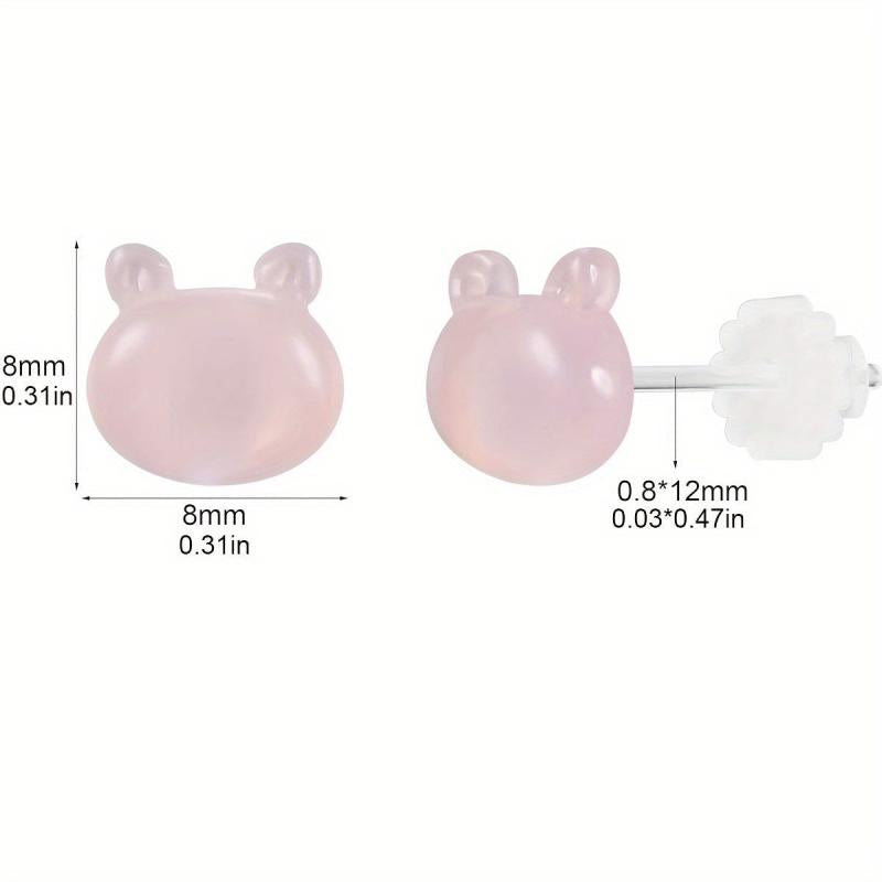 This set includes 8 adorable bear head resin stud earrings with plastic post studs, perfect for those with sensitive ears.