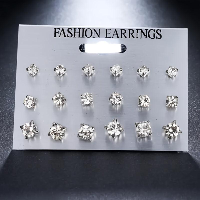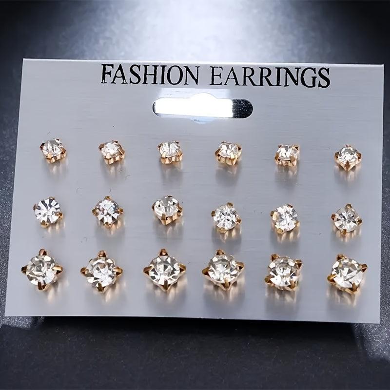 These classic stud earrings are perfect for daily wear with their elegant rhinestone decoration and minimalist design.