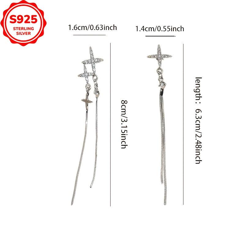 Beautiful pair of hypoallergenic earrings with irregular cross star design and tassel features. Anti-oxidation box included, perfect as a gift for women.