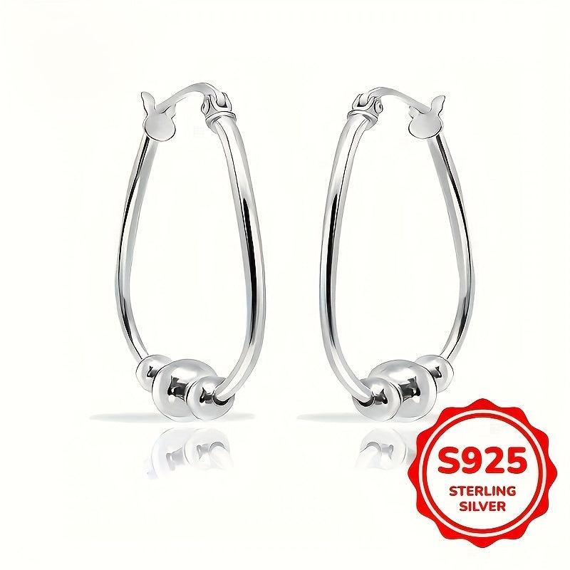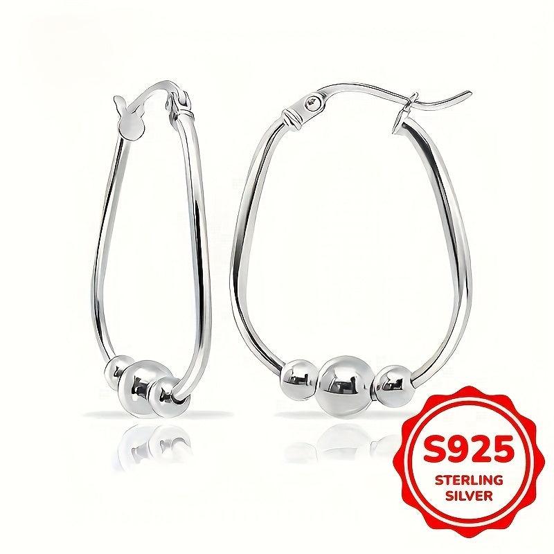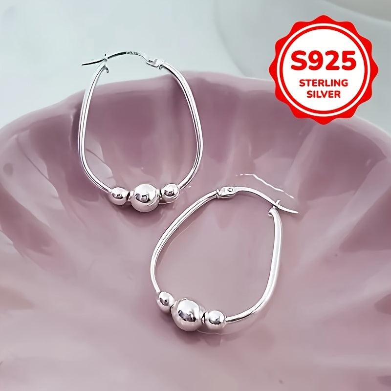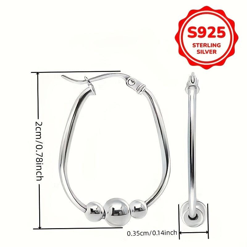 Add a touch of elegance to your outfits with these beautiful 925 pure silvery ring earrings featuring three beads design. Perfect for daily wear or special occasions.