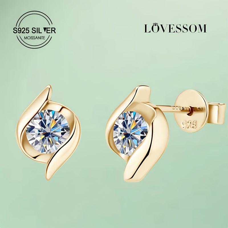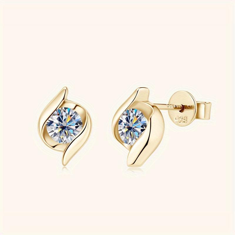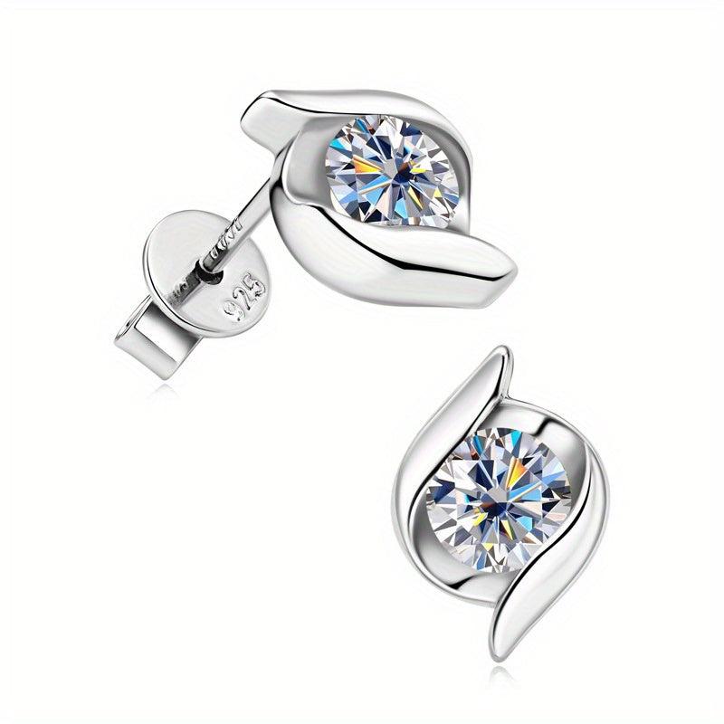 These stud earrings feature a light sense of niche with a creative geometric design. Made of 925 sterling silver and set with 0.5 carats of Moissanite, they are a perfect anniversary surprise.