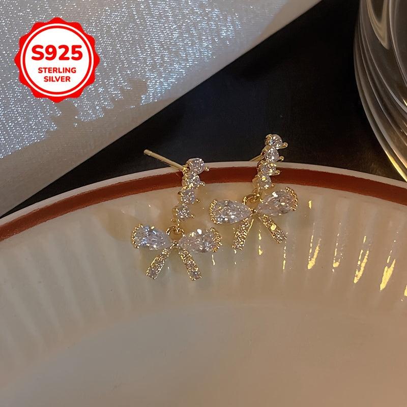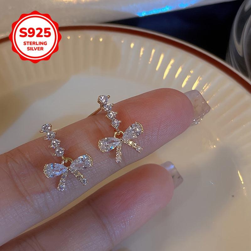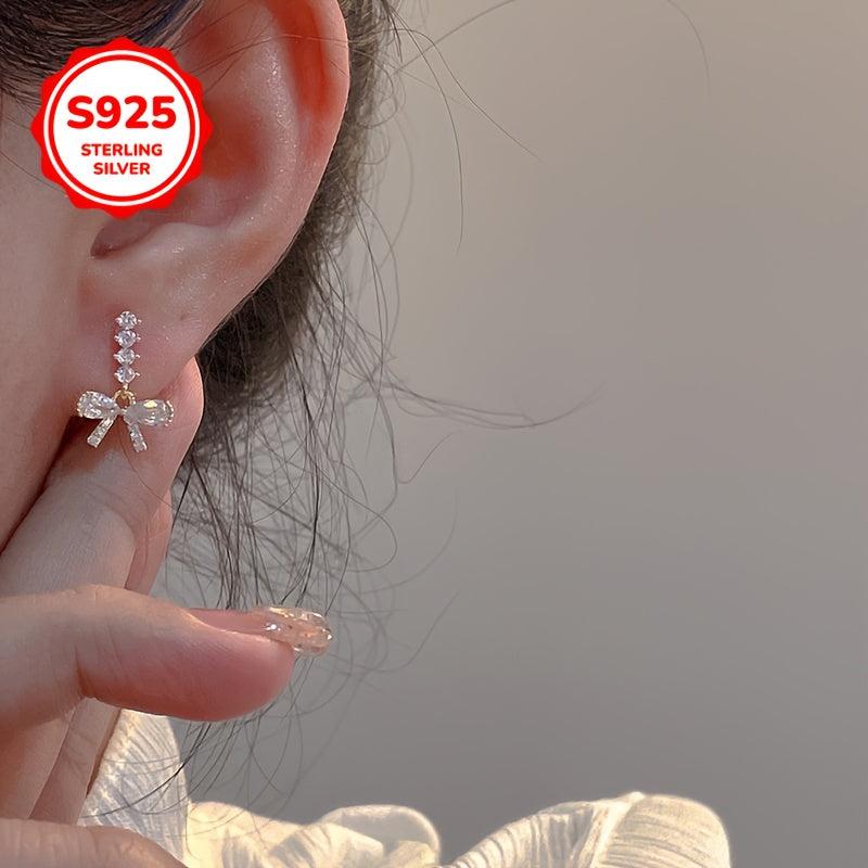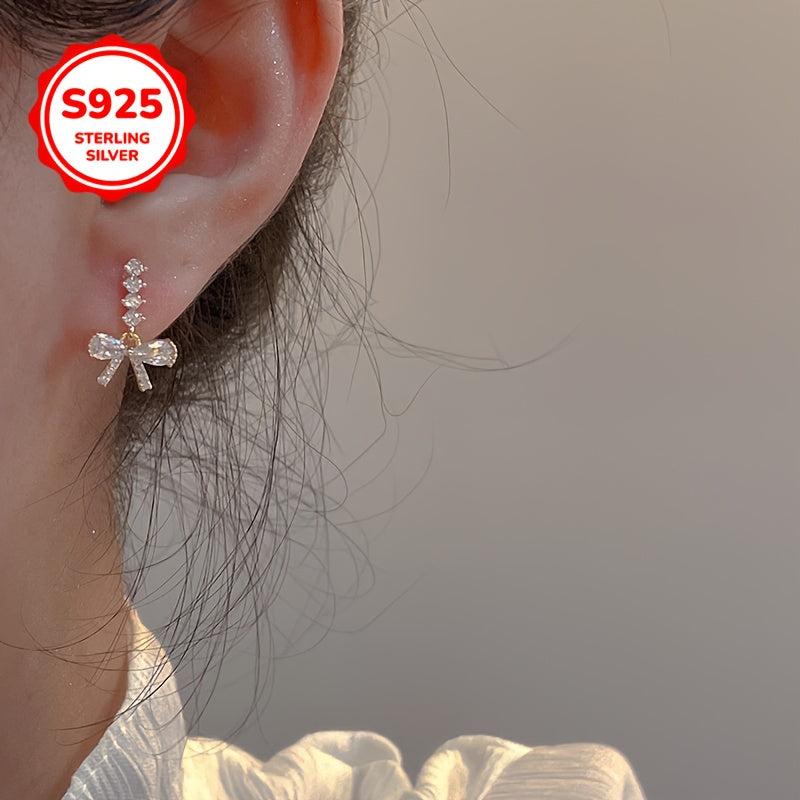 These 925 sterling silver bow earrings are lightweight and hypoallergenic, featuring sparkling synthetic zirconia. Perfect for daily wear or gifting on special occasions like Mother's birthdays.