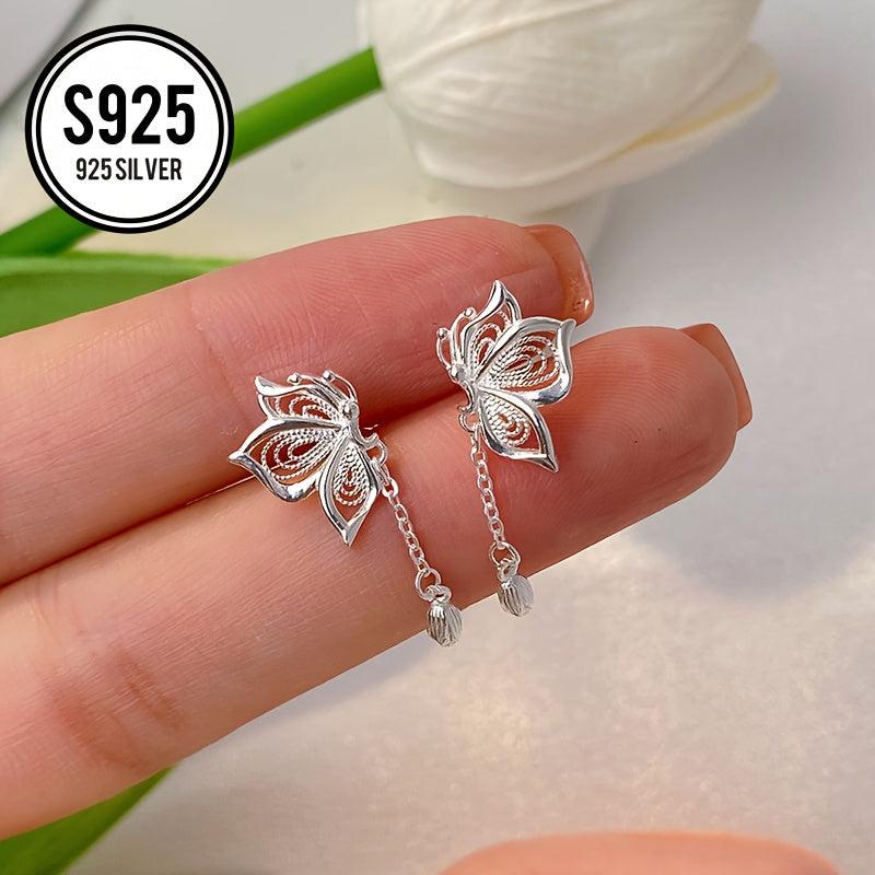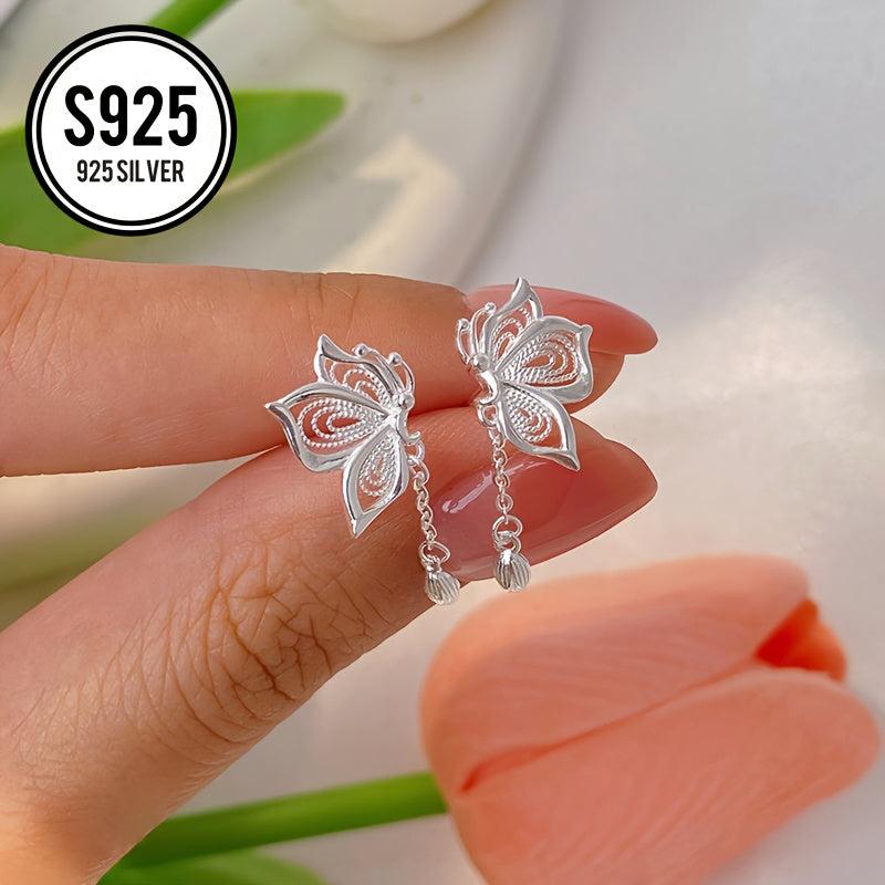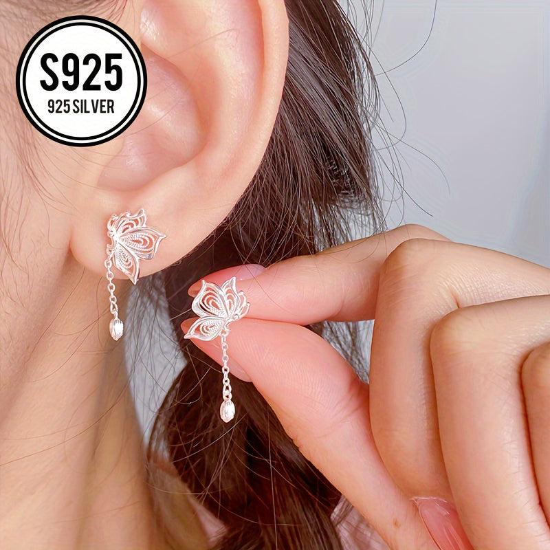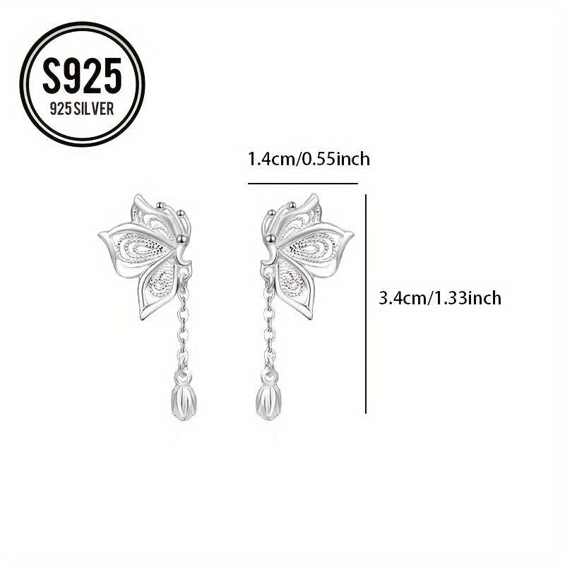 Elegant and chic, these 925 silver butterfly tassel earrings are perfect for daily wear. Great for couples or besties, these high-end earrings make a stylish statement.