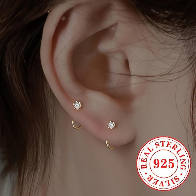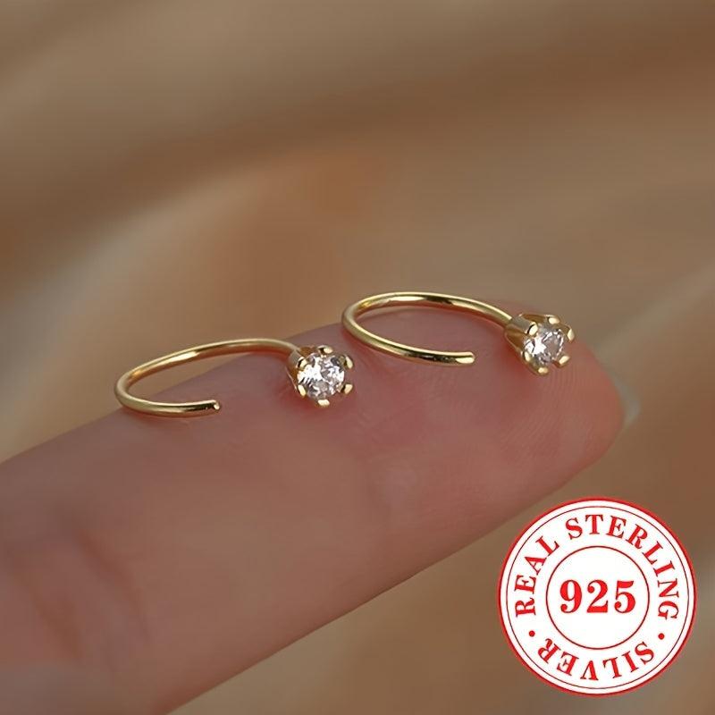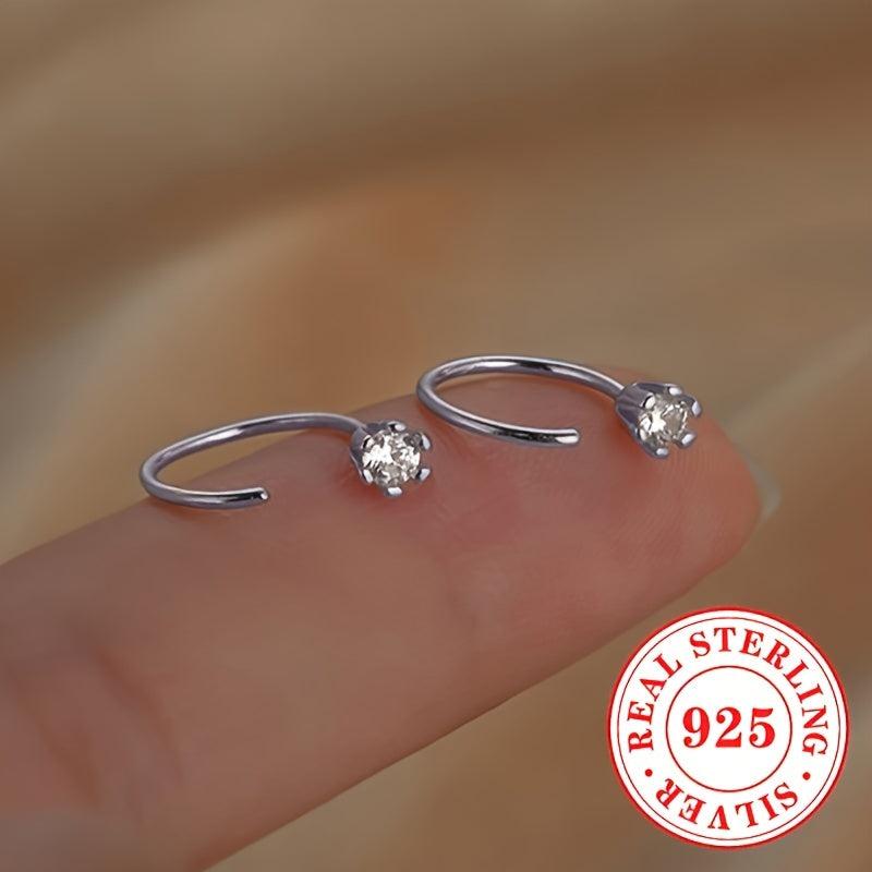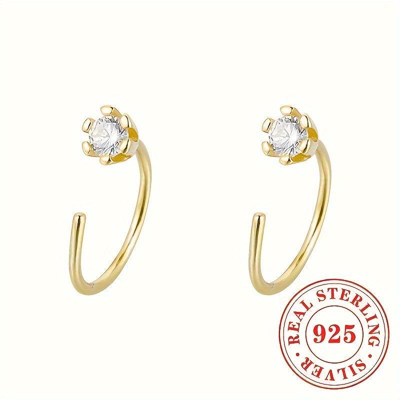 Adorn your ears with these versatile C-shaped earrings made of 925 sterling silver featuring synthetic zirconia, perfect for daily wear and parties.