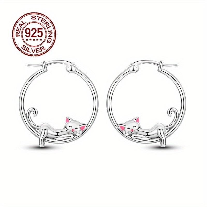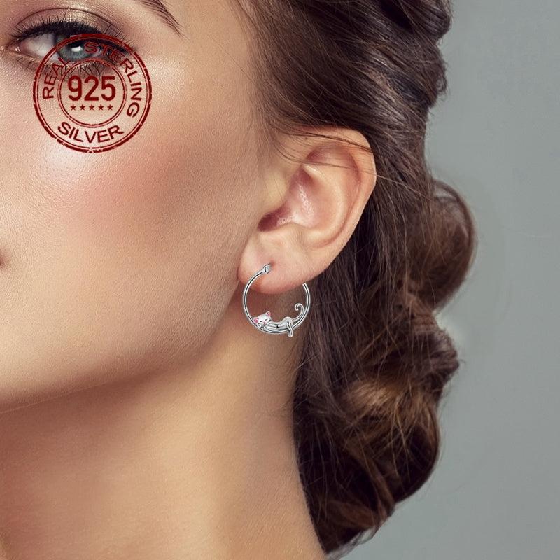 These elegant cat dangle earrings are made of 925 sterling silver and feature sparkling cubic zirconia stones. They are perfect for women with sensitive skin and make an ideal gift for Valentine's day, weddings, or parties.
